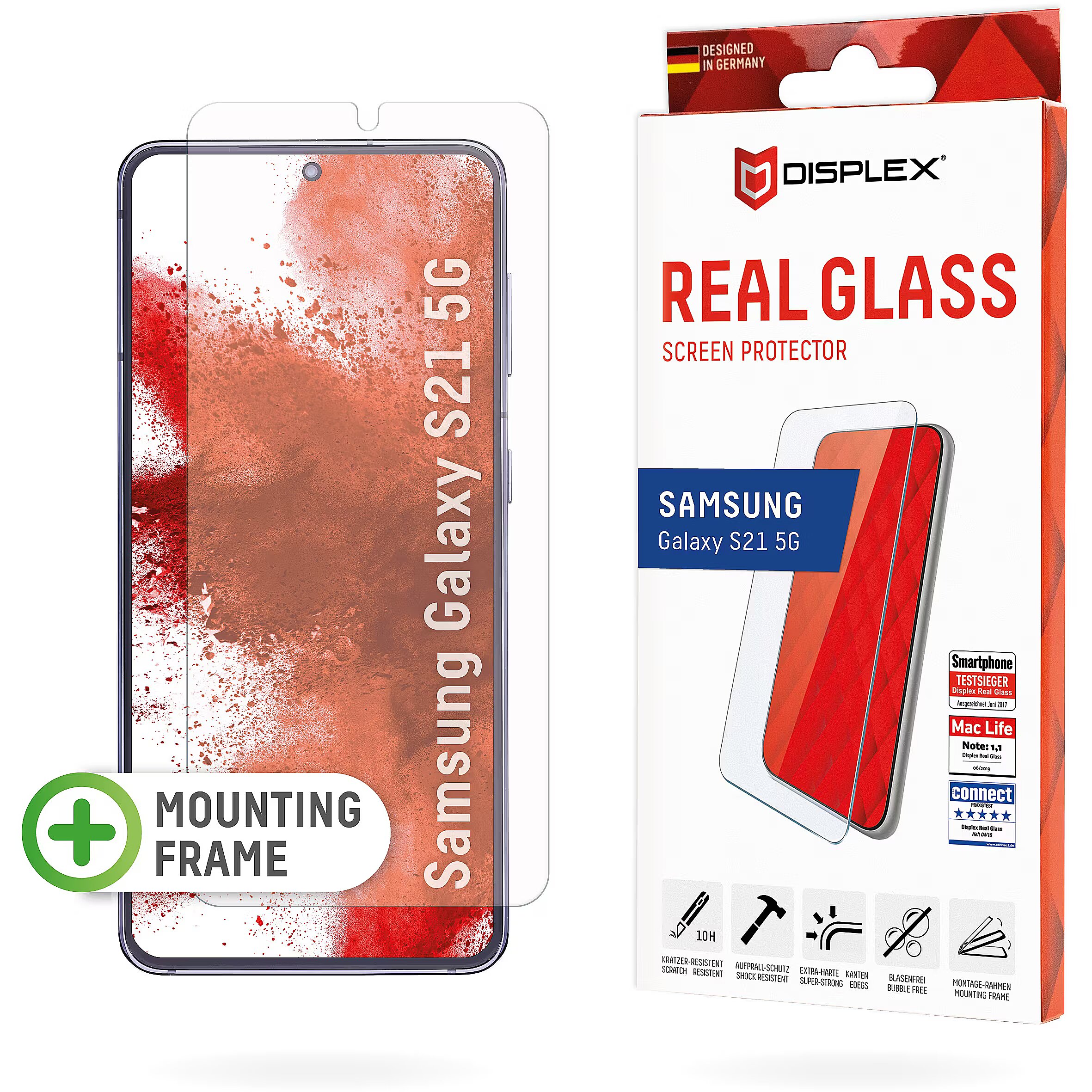 Title - Displex Screen Protector (10H) for Samsung Galaxy S21 5G, Eco Mounting Frame, Tempered Glass, scratch resistant protective film, case friendly