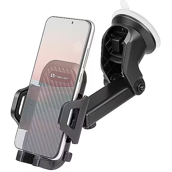Uchwyt samochodowy Tracer przeznaczony jest do przymocowania do przedniej szyby lub kokpitu. Mocna przyssawka z silikonem zapewnia łatwy i szybki montaż, zdejmowanie uchwytu oraz regulację jego położenia.