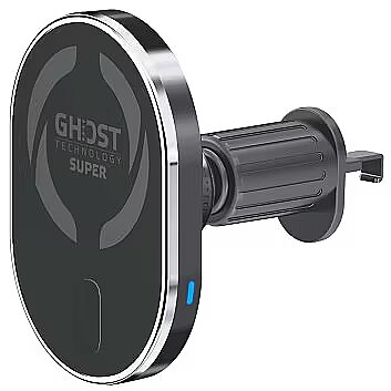 LongDesc - GHOSTSUPERMAGBK is a car mount compatible with the MagSafe magnetic alignment of the latest iPhone models, from 12 onwards. When you place your iPhone onto the holder, the circular magnet will automatically hook onto the device's magnetic module and lock it securely in place. The air vent clip has been improved and equipped with a super resistant anti-fall system: the small hook in the final part of the clip hooks onto the fan fins making GHOSTSUPERMAGBK more performing in terms of stability and grip. The clip is also adjustable, so that the holder can be securely attached to the majority of air vents. The head has a 360° rotation to allow you to adjust the holder to the best angle. The magnetic fixing system is specially designed to work with the latest iPhone models and is therefore completely safe and does not interfere with the smartphone. Included in the box an additional metallic plate to increase the grip of the holder if you have a sporty driving or if you want to use the holder also with other smartphone models.