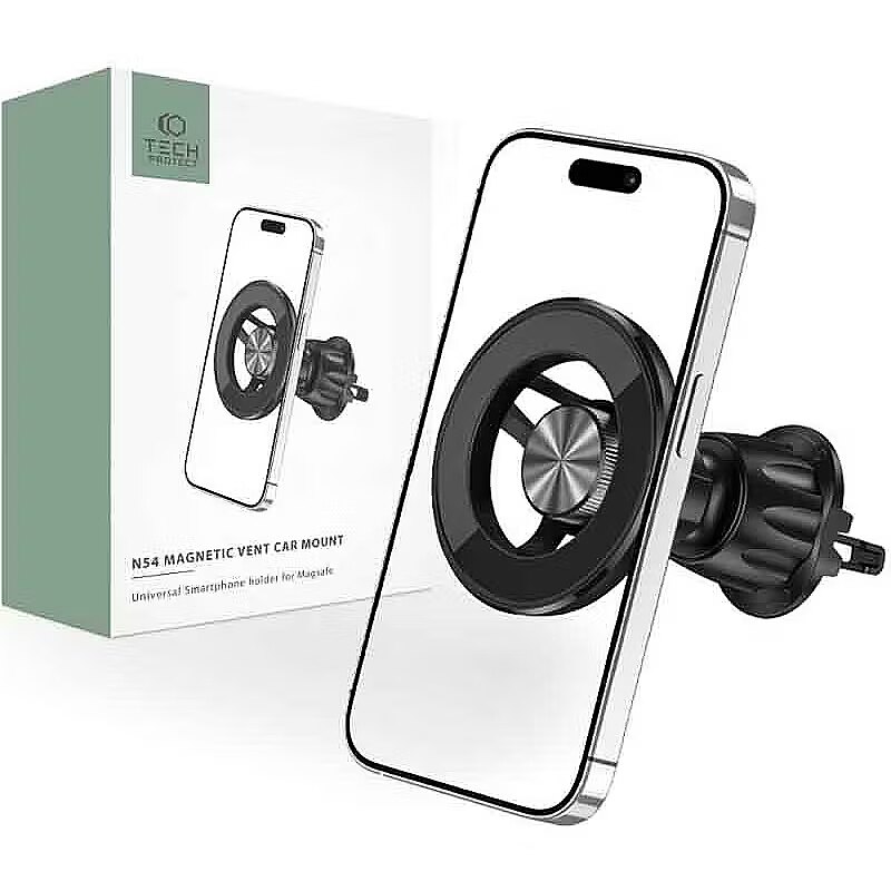 description_et - Tech-Protect telefonihoidik autosse N54 on ventilatsiooniavasse kinnitatav kompaktne hoidik, mis on mõeldud Magsafe tehnoloogia kasutajatele. Väike ja kerge disain ei mõjuta nähtavust sõidu ajal.