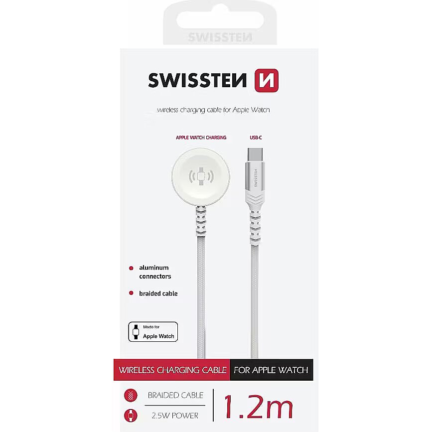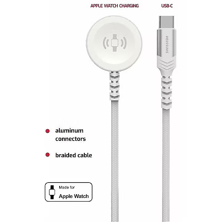 title_en - Swissten Braided Metal Magnetic Wireless Charger For Apple Watch USB-C 1.2m