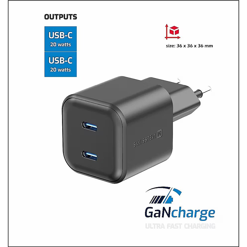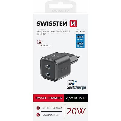 title_en - Swissten GaN PD 2x USB-C Travel Charger 20W