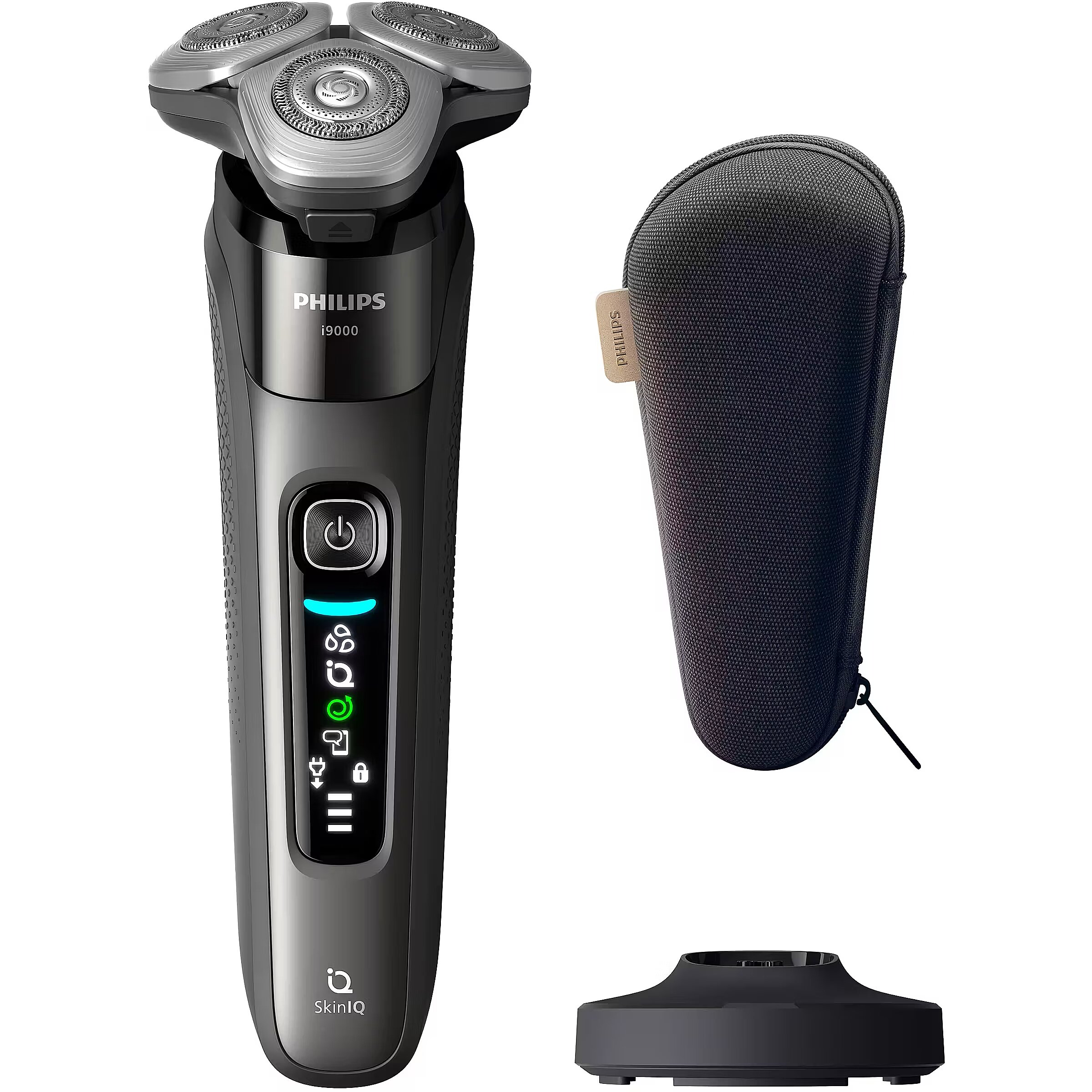 LongDesc - Perfect close shave and skin comfort with SkinIQ Technology Philips i9000 delivers skin-level closeness with its Triple Action Lift & Cut system and 360° Flexing compact heads, even in hard-to-shave areas. AI-powered SkinIQ technology senses and adapts to your skin for ultimate comfort and precision.