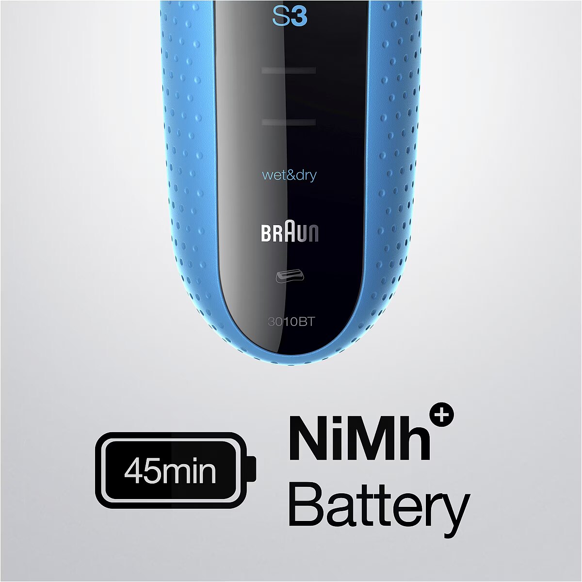 LongSummaryDescription - Braun Series 3 Shave&Style 3010BT. Shaver system: Foil shaver, Product colour: Black, Blue, Shaving system technologies: 2 SensoFoil, 1 Middle Trimmer, 5 kammen 17 mm. Power source: Battery, Battery technology: Nickel-Metal Hydride (NiMH), Operating time: 45 min. Weight: 455 g. Package width: 57 mm, Package depth: 155 mm, Package height: 222 mm. Quantity per pack: 1 pc(s)