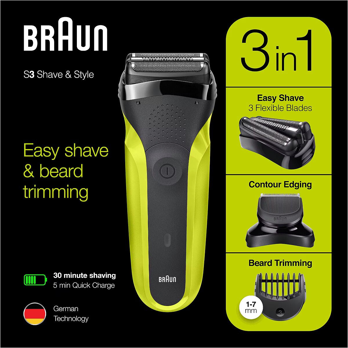 Title - Braun Series 3 Shave&Style 300BT Electric Shaver, Razor for Men, Black/Volt Green