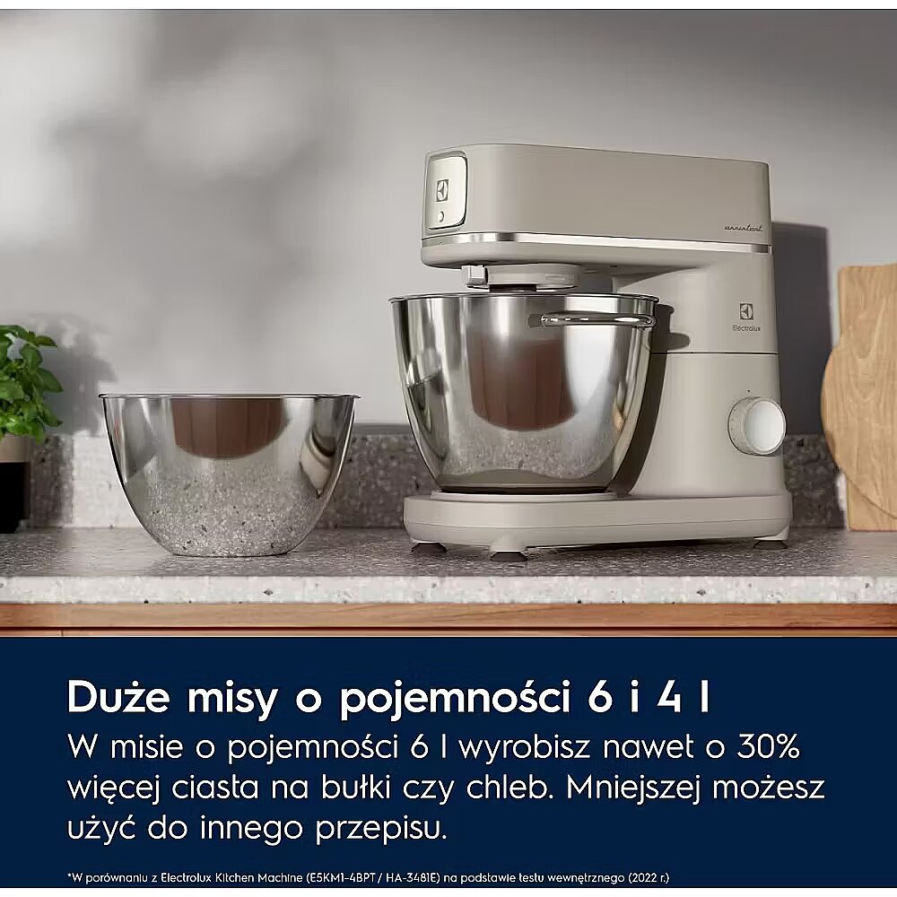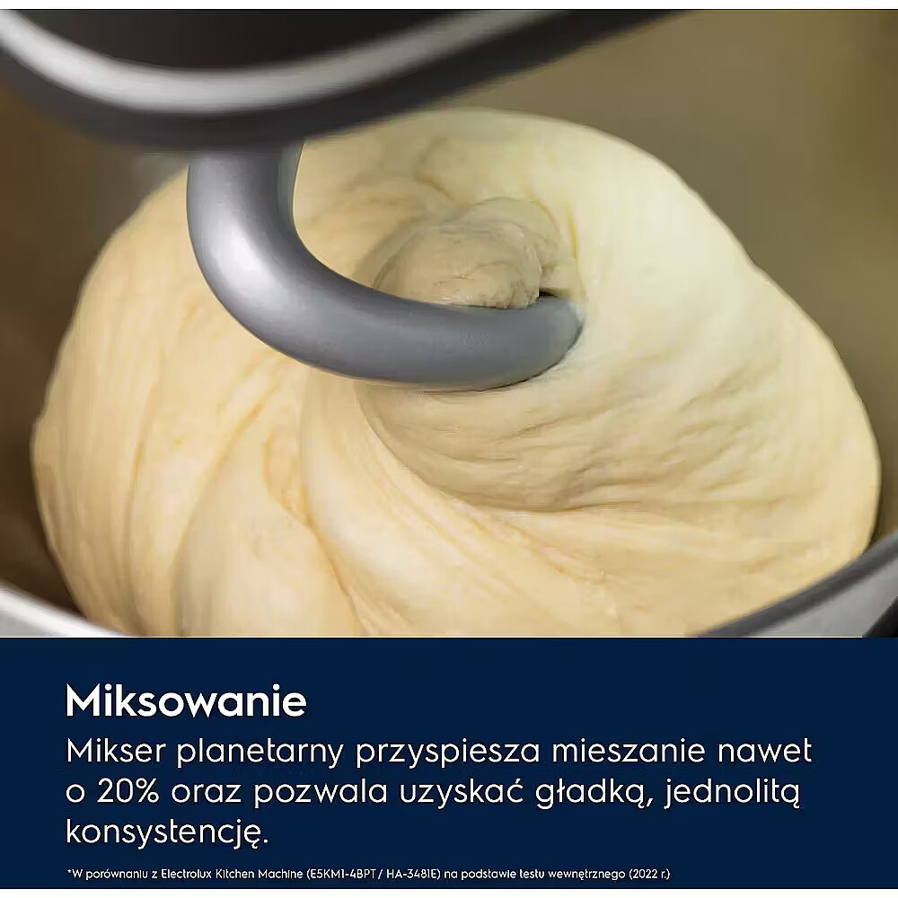 *W porównaniu z Electrolux Kitchen Machine (E5KM1-4BPT / HA-3481E) w oparciu o wewnętrzny test (2022 r.) Do 20% szybsze mieszanie ciasta