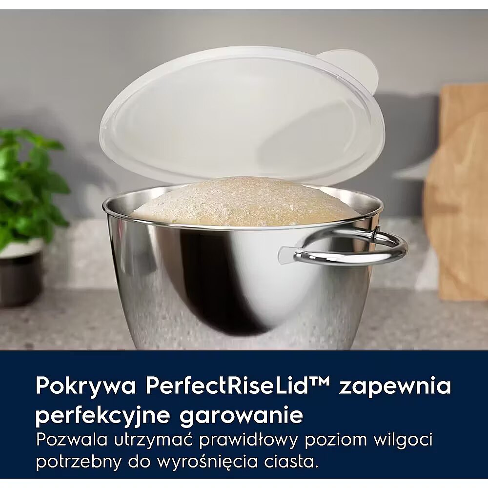 Pokrywa PerfectRiseLid jest idealna do garowania ciasta. Umożliwia cyrkulację optymalnej ilości powietrza, co zapewnia odpowiednią wilgotność wyrastającego ciasta i zapobiega wysuszeniu jego powierzchni. Dzięki temu możesz rozkoszować się pysznymi bułkami każdego dnia. Monitorowanie mieszanki: funkcjonalna lampa LED zapewnia pełną widoczność