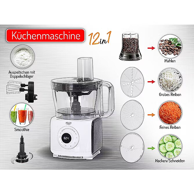 : Dārzeņu spirālēm, Dzirnaviņas, Griešanai, Putotājs, Rīve, Smalcināšanai