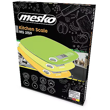 Name - Mesko | Kitchen scale | MS 3159g | Maximum weight (capacity) 5 kg | Graduation 1 g | Display type LCD | Green
