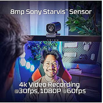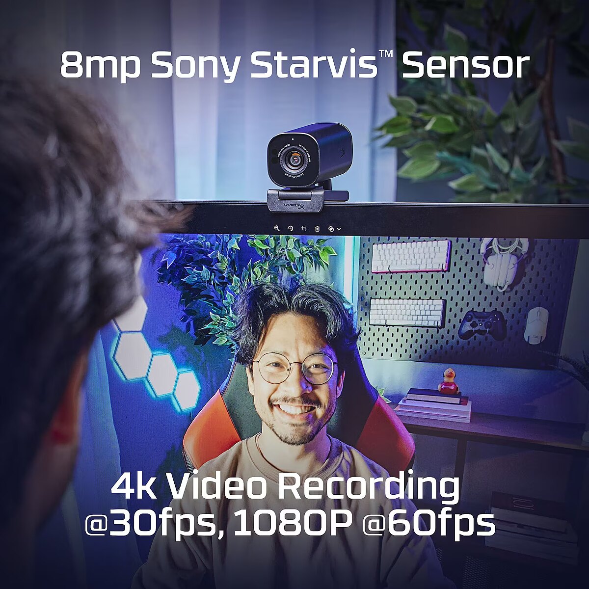 LongDesc - Superstars Need a Stellar Camera.Let your talents be seen in stunning clarity with the HyperX Vision S Webcam. With 4K recording capabilities and an 8-megapixel Sony Starvis™ IMX415 sensor, the HyperX Vision S is built for creators who put a lot of care into their creations’ visuals. It’s capable of capturing a 90º field of view to take in more of your surroundings and can capture it all in 4K at 30fps and go up to 60fps for 1080p. Responsive autofocus capabilities combined with a low-distortion glass lens help you stay in focus while it takes in all those additional details. The included magnetic privacy cover and LED indicator help defend your privacy, putting a physical barrier between you and would-be prying eyes. A universal clip mount with a ¼” mounting point make setting up this USB camera a simple task. Durable and built to last, this camera features a glass lens, aluminum body, and the detachable, ultra-flexible HyperFlex Cable.Get everything looking just right with HyperX NGENUITY Software. Adjust picture settings like contrast, saturation, white-balance, and anti-flicker, as well as camera settings like exposure, zoom, and low-light compensation in the easy-to-use software. The HyperX Vision S camera is compatible with PC and Mac systems, Windows Hello Certified, and works with recording and meeting platforms like Teams, Zoom, OBS, and Discord.
