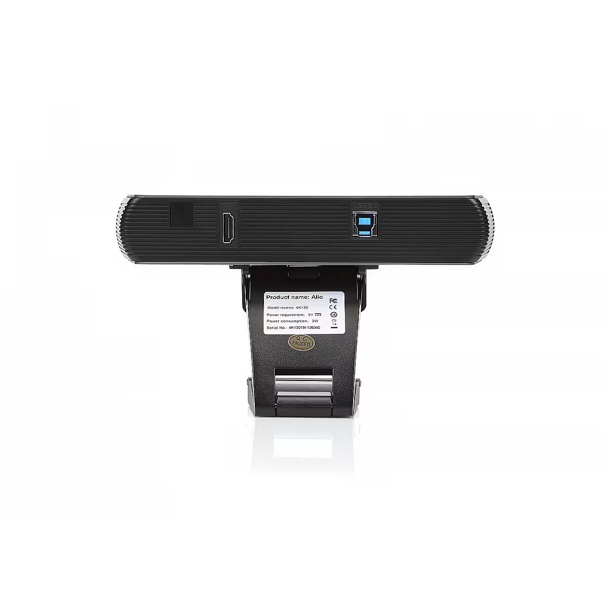Description - Alio 4k120' Kamera 4k (USB, HDMI) Najważniejsze Funkcje: Automatyczne kadrowanie uczestników Funkcja automatycznego śledzenia i kadrowania uczestników na podstawie rozpoznawania twarzy 4K Ultra High Definition Obsługa 4K i wsteczna kompatybilność z 1080P, 720P i innymi rozdzielczościami. USB 3.0 W pełni funkcjonalny interfejs USB 3.0, zasilanie, wideo, audio w jednym. Obiektyw szerokokątny 120° Obiektyw bez zniekształceń z EPTZ, szerokie pole widzenia 120°, zoptymalizowane do potrzeb wideokonferencji. WDR Wspierany Szeroki Zakres Dynamiki pozwala uzyskać naturalny obraz wideo pomimo zmiennych warunków oświetlenia. Wbudowany mikrofon Wbudowana matryca mikrofonowa, wielokierunkowy odbiór, zasięg do 6 metrów. Praca w słabym oświetleniu Zastosowanie algorytmów redukcji szumów 2D i 3Dznacznie redukuje szumy. Nawet przy ultra słabym  oświetleniu utrzymuje obraz czysty i wyraźny, a współczynnik SNR obrazu wynosi 55 dB. Funkcje kamery Rozdzielczości (HDMI) 4K@30fps/25fps, 1080P@60/50/30/25fps, 1080I@60/50fps, 720P@60/50fps Sensor 1/2.5'', CMOS, Efektywne pixele: 8.51M Skanowanie progresywne Obiektyw Focus: f=2.8mm, FOV: 120° Minimalna jasność 0.05 Lux @ (F1.8, AGC ON) Przysłona 1/30s ~ 1/10000s Balans Bieli Auto, Indoor, Outdoor, One Push, Manual Cyfrowa redukcja szumów 2D i 3D Kompensacja tylnego oświetlenia - Tak Specyfikacja USB System Operacyjny Wymagania sprzętowe Windows 7/8/10 lub nowszy macOS 10.10 lub nowszy Google Chromebook Version 29.0.1547.70 lub nowszy Linux 2.4 GHz Intel Core 2 lub nowszy 2 GB RAM lub więcej USB 2.0 port (USB 3.0 wymagane dla 4K) System kolorów YUY2/MJPEG/H.264/NV12 Rozdzielczość 4K, 1080P, 720P, 960x540P, 640x360P, 320x240P Odświeżanie 30fps, 25fps, 24fps, 20fps, 15fps, 10fps, 7.5fps, 5fp Szeroka kompatybilność Wsparcie dla najpopularniejszych aplikacji: MS Teams, Skype, Skype4B, Zoom, TrueConf, Meet, Webex, 3CX, WebRTC, PEXIP, Yealink, Poly, Cisco  i wielu innych