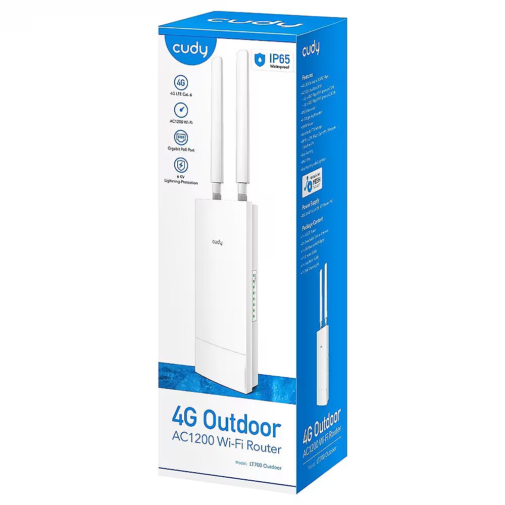 Description - Router LT700 Outdoor LTE FDD/TDD Cat 6 AC1200 Wi-Fi 1 x Gigabit WAN/LAN Nano SIM Card Slot 802.3at/af PoE or Passive PoE 2x Internal WiFi Antennas + 2 x Detachable 4G Antennas VPN & DDNS IP65 WaterProof Turn Everywhere 4G into Speedy AC1200 Wi-Fi