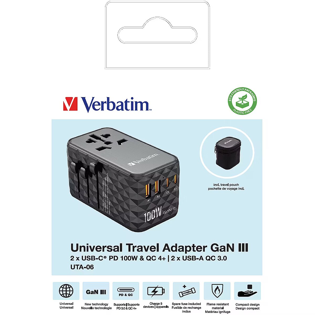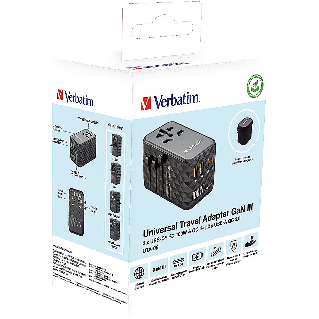 URL - https://www.verbatim-europe.co.uk/en/prod/uta-06-gan-iii-universal-travel-adapter-with-2-x-usb-c-pd-100w---qc-4--2-x-usb-a-qc-30-32121/