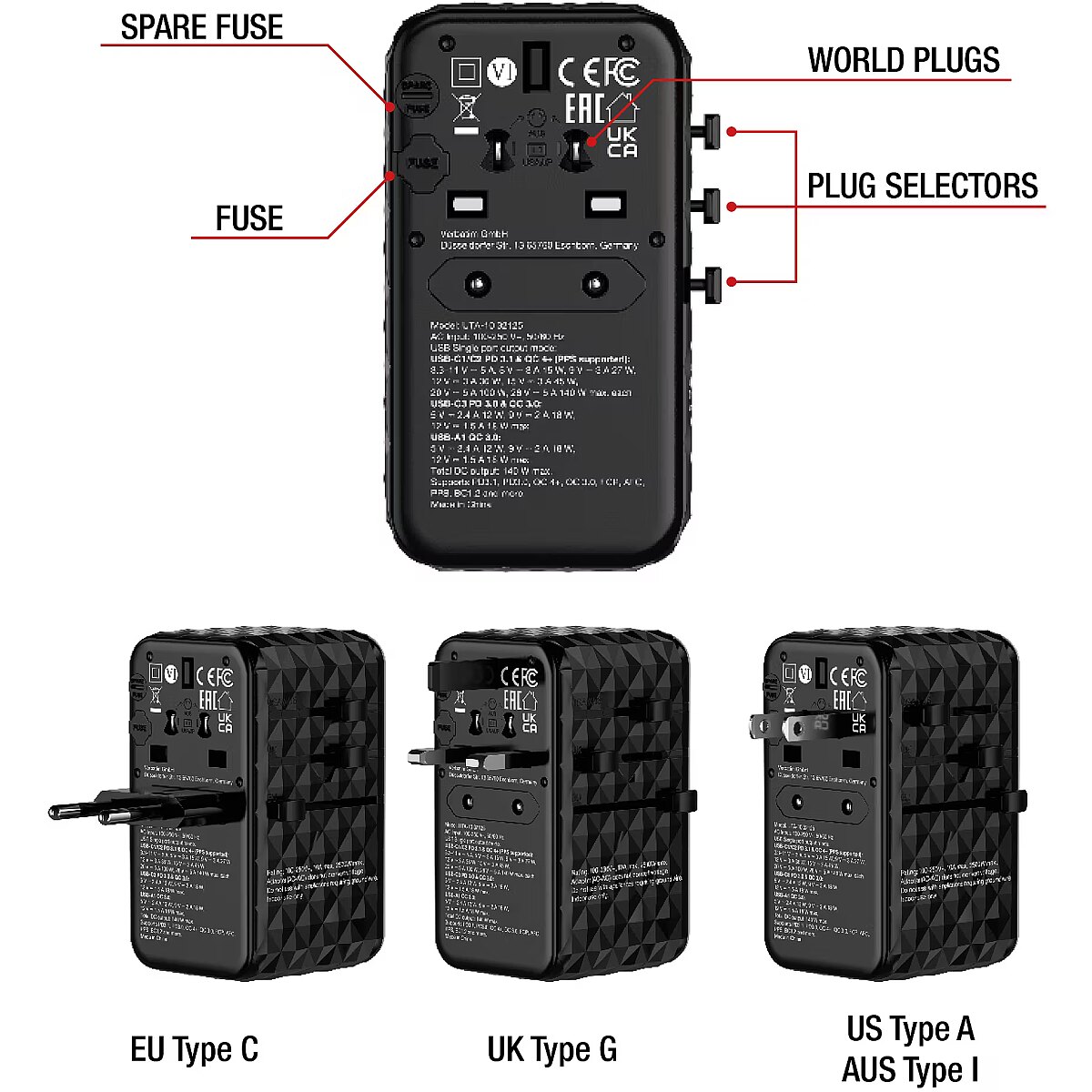 ProductName - UTA-10 140W GaN III Universal Travel Adapter with 2 x USB-C PD 3.1 & QC 4+, 1 x USB-C PD 3.0 & 1 x USB-A QC 3.0 ports