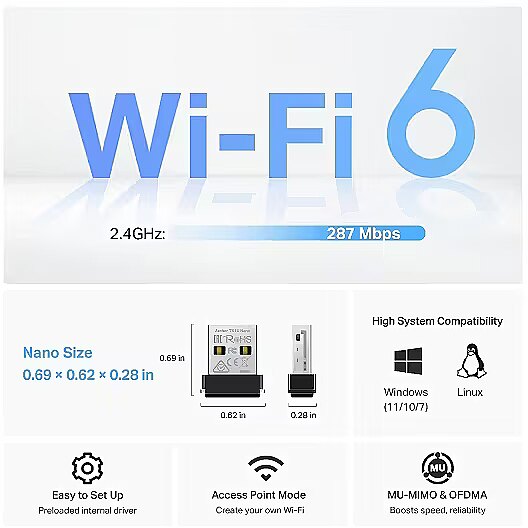 TP-LINK AX300 Nano Wi-Fi 6 Wireless USB Adapter
