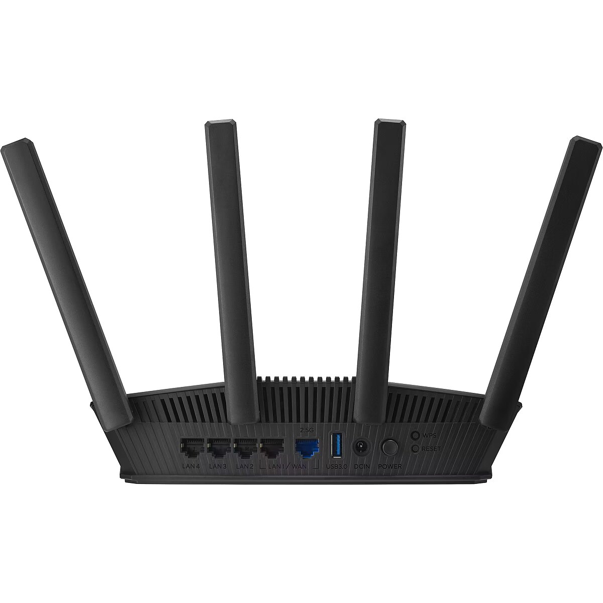 LongSummaryDescription - ASUS RT-BE58U V2. WAN connection type: RJ-45. Wi-Fi band: Dual-band (2.4 GHz / 5 GHz), Top Wi-Fi standard: Wi-Fi 7 (802.11be), WLAN data transfer rate (max): 3600 Mbit/s. Ethernet LAN interface type: 2.5 Gigabit Ethernet, Ethernet LAN data rates: 1000,2500 Mbit/s. Product type: Tabletop router, Product colour: Black, LED indicators: Power, LAN, WAN. Antenna design: External