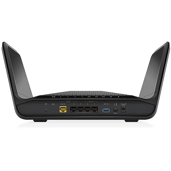 LongSummaryDescription - NETGEAR Nighthawk Tri-Band AX8 8-Stream AX6600 WiFi 6 Router (RAX70). WAN connection type: RJ-45. Wi-Fi band: Tri-band (2.4 GHz / 5 GHz / 5 GHz), Top Wi-Fi standard: Wi-Fi 6 (802.11ax), WLAN data transfer rate (max): 6600 Mbit/s. Ethernet LAN interface type: Gigabit Ethernet, Ethernet LAN data rates: 10,100,1000 Mbit/s, Networking standards: IEEE 802.11a, IEEE 802.11ac, IEEE 802.11ax, IEEE 802.11b, IEEE 802.11g, IEEE 802.11i, IEEE 802.11n. Security algorithms: 128-bit AES. Product type: Tabletop router, Product colour: Black