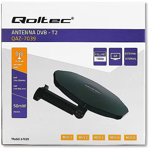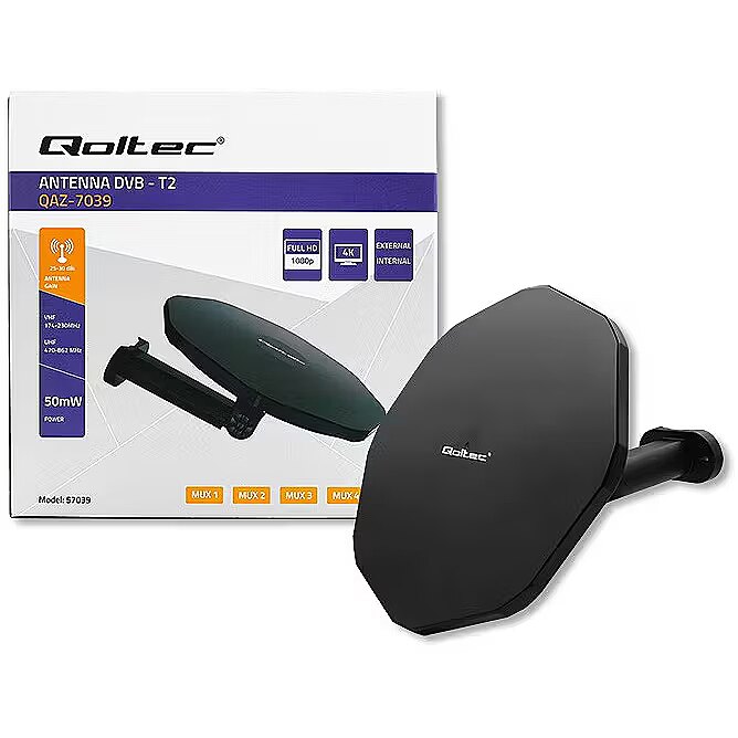 When you choose a Qoltec brand antenna, you can count on; Full HD and 4K resolution, DVB-T/DVB-T2 reception, UHV and VHF frequency reception, omnidirectional- receives signal from any direction without any problem, MUX1, MUX2, MUX3, MUX4, MUX8, outdoor or indoor installation, built-in LTE filter eliminates signal interference and ensures the highest quality reception, does not require directing towards the transmitter, high protection class IP65. The new standard for TV at home and on travel