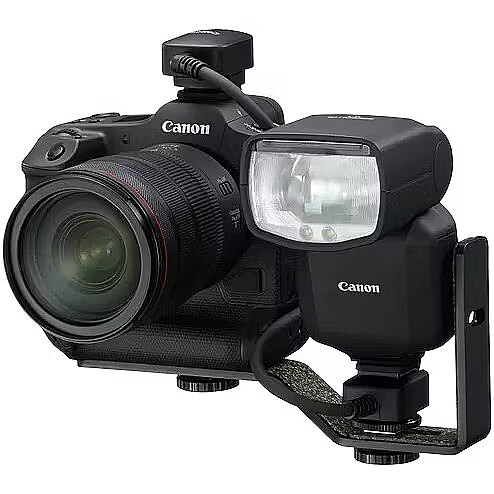 Кабель вспышки OC-E4A — идеальный аксессуар для объектива Canon RF 5,2 мм f/2,8L Dual Fisheye: кабель расположен под углом к ​​основанию, поэтому он не застревает в изображении на 360°.
