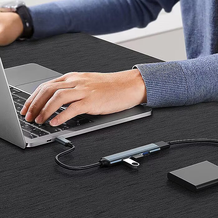 Connect multiple devices simultaneously and enjoy fast and reliable file transfer. Our hub allows you to connect additional devices and accessories to your computer, such as a mouse, keyboard, printer, flash drive, extra monitor, projector, headphones, speakers and more. With our device, you do not have to choose which device to disconnect in order to connect another one. The hub is equipped with a USB 3.0 port and 3 USB 2.0 ports.