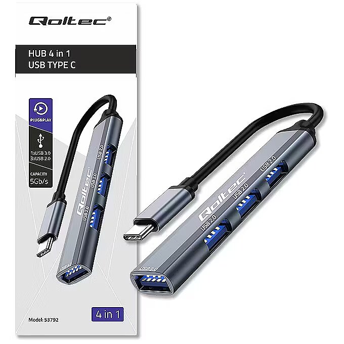 Qoltec HUB adapter USB c 3.1 4in1, USB 3.0, 3x USB 2