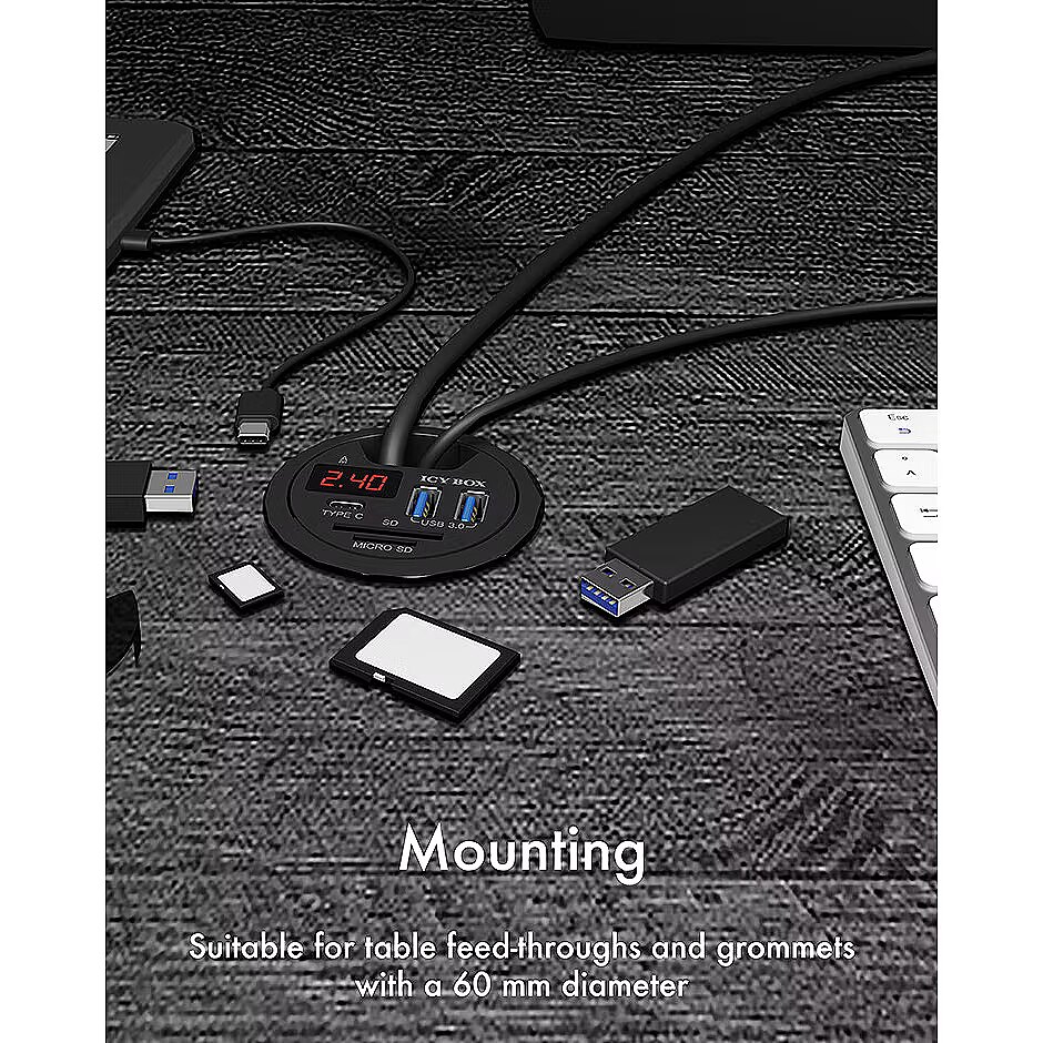 Raidsonic ICY BOX IB-Hub1404 Desk Hub 3xUSB 3.0 Type-C SD/MicroSD card reader LED display