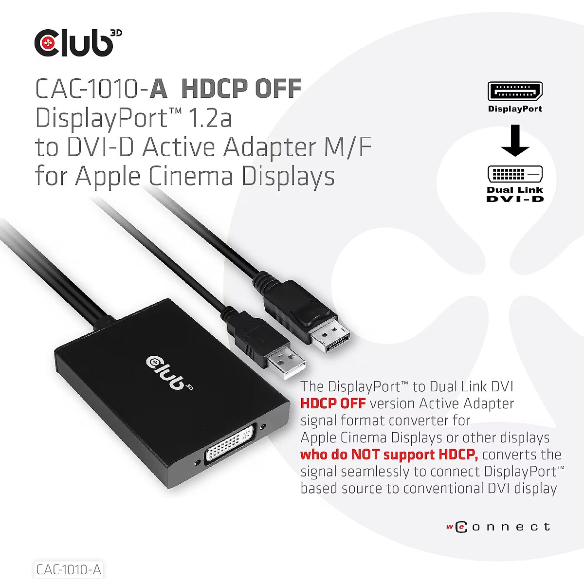 Title - CLUB3D DisplayPort to Dual Link DVI-D HDCP OFF version Active Adapter M/F for Apple Cinema Displays
