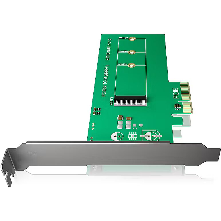 LongDesc - The little ones are the fast onesThe IB-PCI208 converts M.2 (NGFF) PCIe to PCIe x4, thereby allowing the connection of fast and ultra-compact M.2 cards to an existing system. The PCI bracket also grants firm hold in the corresponding mounts.Can hold a lotThe IB-PCI208 can hold cards in sizes 22x42/60/80 mm and independently of the operating system at that. Power is supplied via the PCIe host interface.Quick installationThe cards are easy to installed thanks to pre-punched holes. Connect the PCI-e card and you browse through your files with Up to 32 Gbit/s.