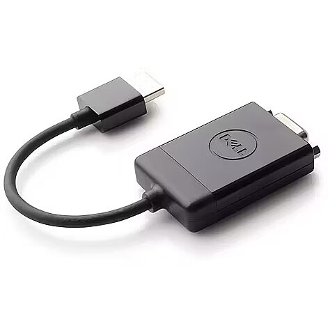 LongDesc - Adapter converts HDMI to VGAThe versatile Dell HDMI to VGA adapter enables the user to view video content from any laptop or tablet with HDMI video output on a variety of VGA-compliant displays, ranging from monitors to projectors. Supporting a maximum video resolution of 1080p, this user-friendly adapter ensures a quality viewing experience and features a sleek, compact design.Video adapter ensures connectivityThis video adapter allows you to take video content from your laptop or tablet and display it on any monitor, projector or HDTV featuring a VGA input. As long as your device is equipped with an HDMI output, this compact adapter ensures a seamless conversion. Use it to enjoy movies on a home projector, mirror your desktop for an expanded workstation or show presentations at school or work.Enjoy a crystal-clear viewing experienceThe Dell HDMI to VGA adapter supports video resolution of up to 1080p to provide an enriched visual experience--an ideal way to enhance a presentation or appreciate intricate graphics.Compact size offers easy portabilityMeasuring 6.9 x 1.3 x 0.5 (L x W x H) inch, this plug-and-play adapter is easy to use and keep handy for impromptu presentations for clients or movie nights with friends. The adapter is fitted with a 19-pin HDMI on one end and a 15-pin HD15 VGA on the other, a standard fit for a wide variety of VGA compatible display monitors, projectors and HDTVs.