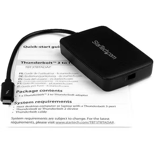 LongDesc - Use first-generation Thunderbolt and Thunderbolt 2 devices with your new Thunderbolt 3 computerWith this adapter, you can connect Windows and Mac based Thunderbolt™ 3 computers to older Thunderbolt devices, such as external hard drives, Thunderbolt displays, and older Thunderbolt capable Mac computers.Because this adapter is backward compatible, you can connect to first-generation Thunderbolt devices at 10Gbps speed. With Thunderbolt 2 devices, you can connect at 20Gbps. The adapter satisfies all requirements for bi-directional data transfers and simultaneous power for bus-powered devices.The TBT3TBTADAP is backed by a 2-year warranty for guaranteed reliability.This adapter is not compatible with Thunderbolt 4 computersYour computer's Thunderbolt 3 ports might not function properly until you update one or more of the following on your computer:• BIOS• Thunderbolt firmware• Thunderbolt 3 controller drivers• Thunderbolt 3 softwareThe required updates will vary depending on your computer.For an up-to-date list of affected computers and instructions, visit http://thunderbolttechnology.net/updates . If your manufacturer isn't listed on the Thunderbolt website, contact your manufacturer.The StarTech.com Advantage