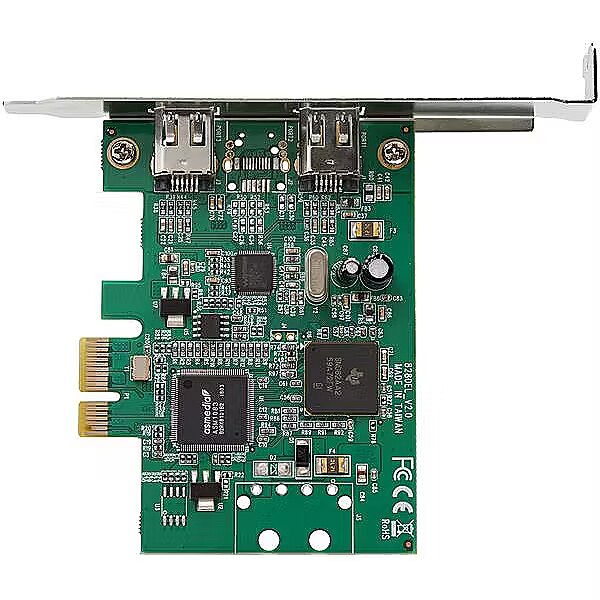 LongDesc - PCI Express to Firewire Adapter | FireWire 400 | Texas Instruments TSB82AA2The PEX1394A2V 2-Port PCI Express FireWire Card lets you add two FireWire 400 ports to your desktop PC. This TAA compliant product adheres to the requirements of the US Federal Trade Agreements Act (TAA), allowing government GSA Schedule purchases.Future ProofAdd FireWire to the latest computers with PCI Express slots. Keep using your legacy devices that would not otherwise be compatible with new computers. This allows you to connect IEEE 1394A FireWire devices such as digital cameras, external hard drives, DV camcorders, printers and moreWide CompatibilityFor broad compatibility, the PCIE firewire adapter is natively supported in Windows® with no additional drivers required. The 2 port PCI Express 1394a Firewire Card comes equipped with a standard profile bracket and includes a low-profile/half-height bracket for installation in small form-factor computers. PCI Express to Firewire adapter is also compatible with macOS 10.10 through 10.13.The Choice of IT Pros Since 1985StarTech.com conducts thorough compatibility and performance testing on all our products to ensure we are meeting or exceeding industry standards and providing high-quality products to IT Professionals. Our local StarTech.com Technical Advisors have broad product expertise and work directly with our StarTech.com Engineers to provide support for our customers both pre and post-sales.PEX1394A2V2 is backed by a StarTech.com 2-year warranty and free, lifetime technical support.The StarTech.com Advantage