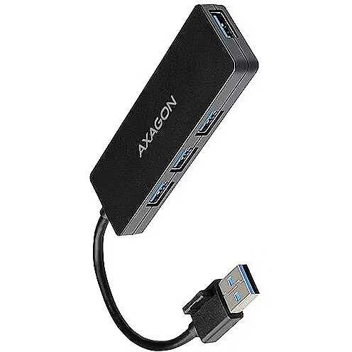 LongDesc - 4-port USB 3.2 Gen 1 hub AXAGON HUE-G1A is a small and thin hub suitable not only for travel. Elegant plastic body with a semi-matt, finely structured, fingerprint-resistant surface. Connect up to four USB devices simultaneously to your laptop or computer easily and quickly.The USB hub is the ideal accessory for laptops with a small number of USB-A ports. The hub does not even frighten to connect with phones using the appropriate OTG adapter or USB-A > USB-C. For example, you can connect a flash drive, keyboard and mouse to your phone.This small travel hub can also handle the permanent connection of several external drives. The 14 cm long USB cable is ideal for mobile devices users. The last icing on the cake is the possibility of fixing the cable to the body using a plastic boss on the USB-A connector.Features:• SuperSpeed USB - USB 3.2 Gen 1 interface (before USB 3.1 Gen 1 / USB 3.0).• 4 downstream SuperSpeed USB ports type A female with enough space around the connectors.• 1 upstream USB 3.2 Gen 1 port with USB type-A male connector on a fixed 14cm long cable.• Compatible with USB 3.2 Gen 2, backward compatible with USB 2.0 and USB 1.1.• Supports transmission rates 1.5 / 12 / 480 / 5000 Mbit/s (low / full / high / super speed).• Possibility to connect your device while running thanks to the Hot Plug support.• Full Plug and Play support.• Standby support.• Power supply via USB bus - USB bus power.• Support for charging mobile devices.• The high quality shielded cable ensures high communication speed and minimal undesirable interference.• Hub dimensions 96 x 30 x 10 mm.• Hub weight 33 g (incl. cable).• USB cable 14 cm long.Suported OS:• MS Windows XP / Vista / 7 / 8 / 8.1 / 10 and later, Windows Server 2003 / 2008 / 2012 / 2016 and later, (supported are all 32- and 64-bit Windows OS versions), Mac OS X 10.4.x and higher, Linux with kernel 2.6.x and above, Android most of versions.• Note: Drivers are included with supported operating systems and are installed completely automatically. No other drivers need to be installed and are not even available.Package contains:• SuperSpeed USB hub with fixed 14 cm long cable,• multilingual manual CZ / DE / DK / ENG / ESP / FIN / FR / GR / HR / HU / IT / NL / PL / PT / RO / RU / SK / SWE / TR / BG / CN / ARA,• packed in a double-sided heat sealed blister with clearly indicated parameters.