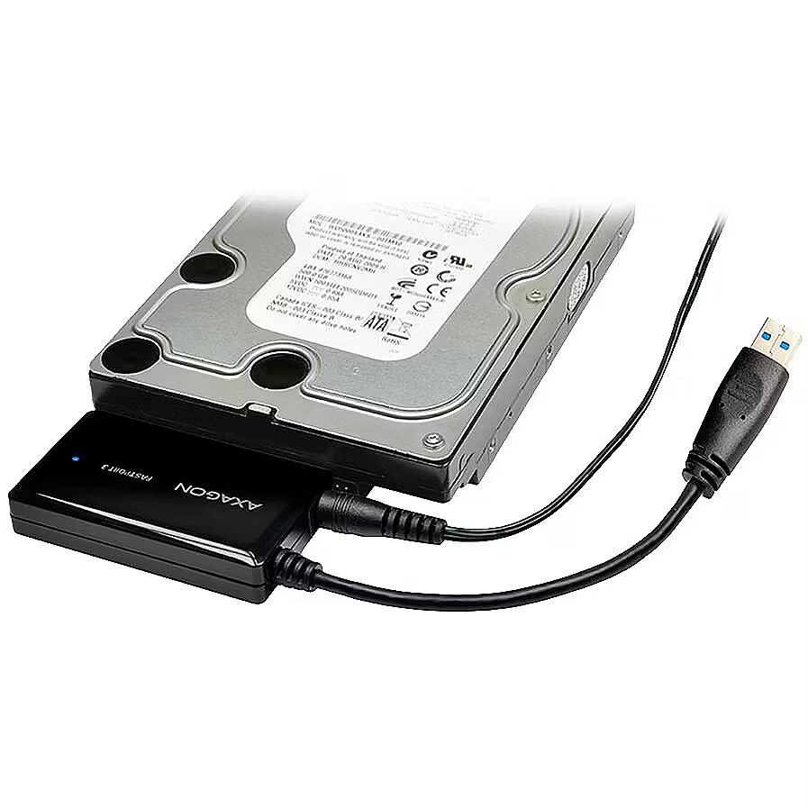 LongDesc - The universal all-in-one AXAGON ADSA-FP3FASTport3 adapter with USB 3.0 and SATA 6G interface for easy connection of any SATA disk or drive.Supports all types of 2.5" HDD / SSD, 3.5" hard disks and 5.25" optical CD, DVD or Blu-ray drives.It deals with all SATA, SATA II and SATA III disks without limiting maximum capacity.The current SATA III / 6G interface allows to use the speed of modern SSD disks.Reading of S.M.A.R.T. information monitoring the condition of the connected disks. Supports spinning down of connected disks as well as an adapter.The installation can be handled even by a layman - the disk connects to the adapter and the adapter to the computer's USB port; the rest is done automatically.The adapter with 2.5" HDD/SSD is just enough to power on the USB bus, no need to handle the network-based feeder.Features:• Compatible with USB 3.0 and backward compatible with USB 2.0.• Supports transmission rates 12 / 480 / 5000 Mb/s (low / full / high speed).• Supports 2.5" and 3.5" SATA III/II/I disks without limiting maximum capacity.• Compliant with Serial ATA 3.1 specification (SATA/600), transmission rates of up to 6 Gb/s.• Compliant with Serial ATA 2.0 specification (SATA/300), transmission rates of up to 3 Gb/s (300 MB/s).• Compliant with Serial ATA 1.0 specification (SATA/150), transmission rates of up to 1.5 Gb/s (150 MB/s).• The total bandwidth / transmission rate of the adapter is determined by the USB 3.0 interface used (theor. 5 Gbit/s).• Supports booting from SSD/HDD connected via an USB adapter.• HDD Auto Spindown - automatic spindown of a disk after period of inactivity lasting 15 minutes.• HDD Turn Off - turns off the disk after removing the device or spinning down the PC.• Possibility to connect your device while running thanks to the Hot Plug support.• Full Plug and Play support.• Connection via direct USB 3.0 Type A male connector on a 22 cm long cable that is permanently connected to the adapter. • A blue, decently bright LED indicating the connection of USB power supply (permanent light) and data transmission (blinking).• Supplying the power via USB 3.0 bus up to 900mA from one USB port is sufficient for 2.5" HDD / SSD.• To supply power to an adapter with 3.5" disk or optical drive, a compact external AC/DC adapter 12V - 2A (24W) with supply cable approx. 150 cm long is included.• USB adapter dimensions 71 x 44.5 x 14.3 mm.• Adapter weight only 38 g, incl. USB cable.Supported OSs:• MS Windows XP / Vista / 7 / 8 / 8.1 / 10 and later, Windows Server 2003 / 2008 / 2012 / 2016 and later (supported are all 32- and 64-bit Windows OS versions), Mac OS X 10.x and higher, Linux with kernel 2.6.x and above.• Note: Drivers are included with supported operating systems and are installed completely automatically. No other drivers need to be installed and are not even available. Package contains:• USB 3.0 - SATA adapter with permanently connected 22 cm long cable,• power adapter 100-240V / 12V-2.2A,• packed in a cardboard box with the installation procedure included.