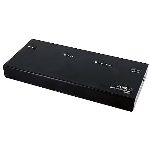 LongDesc - The ST122DVIA DVI splitter lets you share one DVI video and audio source on two displays and acts as a signal amplifier that allows you to locate your DVI monitors up to 33ft (10 m) away from your computer or DVI signal source.With support for high definition resolutions up to 1080p (HDTV)/1920x1200 (PC), the DVI splitter delivers a simple and convenient DVI video solution that suits virtually any application or operating environment (classroom, healthcare, professional A/V, control centres, retail POS environments).The DVI video splitter/distribution amplifier is easy to install, providing you with flawless digital video that will help you get the most from your DVI-enabled monitors, projectors, or plasma screens.Designed to provide dependable performance, the DVI splitter/signal distribution amplifier is backed by StarTech.com’s 2-year warranty and FREE lifetime tech support. The StarTech.com Advantage- Doubles as an extender up to 33 feet (10 meters) from your DVI source.- Splits a DVI signal to display sharp digital images on two monitors with support for HD resolutions and stereo audio.