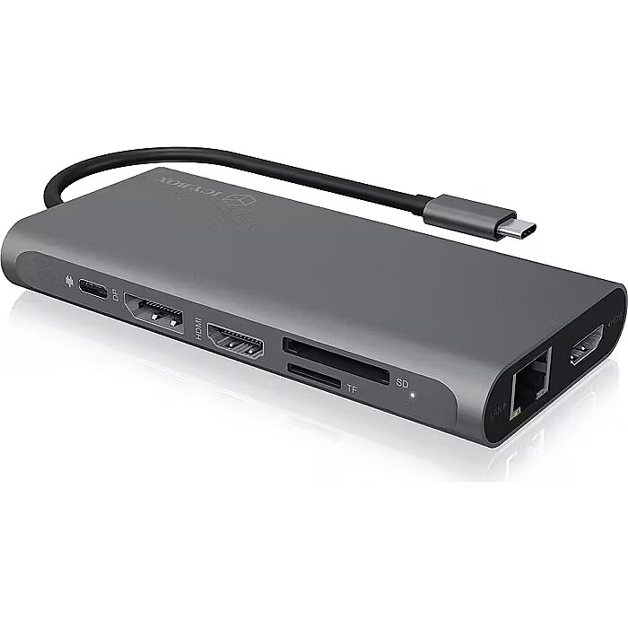 Description -   12-in-1 USB Type-C dock with PD 100 W   MORE CONNECTIONS: The 12-in-1 USB Type-C docking station adds 2x USB-C, 2x USB-A 3.0, 2x USB-A 2.0, 2x HDMI, DP 1.4, SD/microSD card reader and Gigabit LAN to your notebook or PC. WORK EFFECTIVELY: Extend or mirror your display on up to three monitors. HDMI and DisplayPort Alt Mode enable a resolution of up to 3840x2160/60 Hz RAPIDLY FAST: The docking station's USB 3.0 ports enable data transfer rates of up to 5 Gbps. With the LAN (RJ45) interface, you can also surf the Internet at high speed. FULLY CHARGED: Thanks to Power Delivery, connected devices are charged with up to 100 W via an optionally available USB-C charger. This ensures that you always have enough power MAXIMUM COMPATIBLE: The docking station supports Windows and macOS. It is the perfect extension for MacBook, iPad Pro, Huawei MateBook X, Dell XPS 13, ThinkPad, Chromebook and more.
