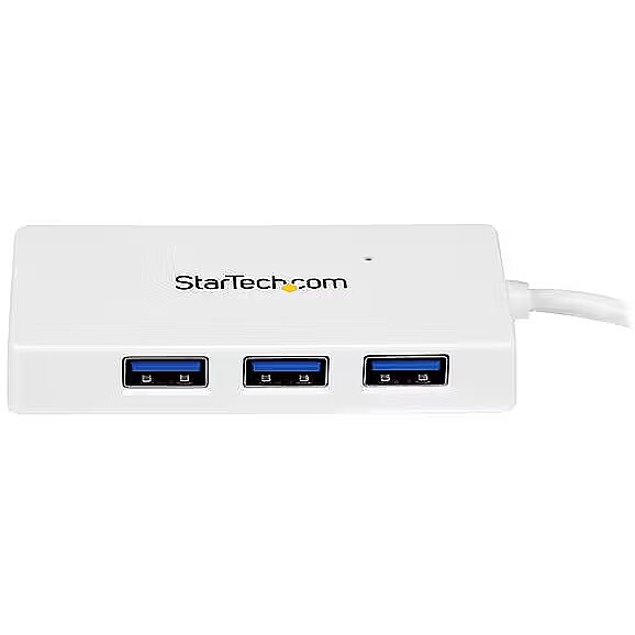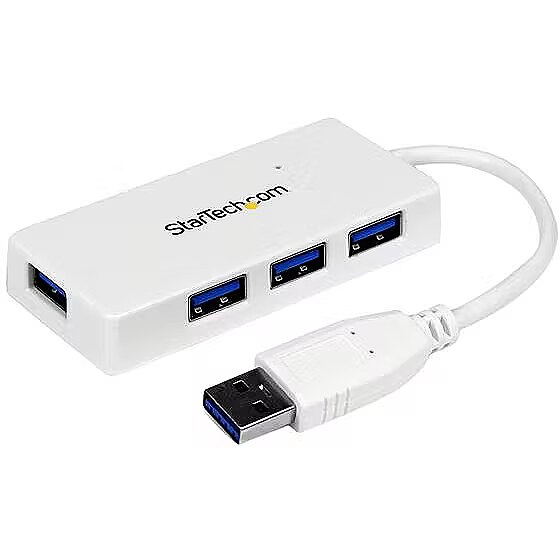 LongDesc - Add four external USB 3.2 Gen 1 ports to your notebook or Ultrabook™ with a slim, portable hubThe ST4300MINU3W Portable 4 Port SuperSpeed Mini USB 3.2 Gen 1 Hub (White) lets you expand your USB connectivity by turning a single USB 3.2 Gen 1 port into four external USB 3.2 Gen 1 ports. The integrated cable design makes this mini USB hub the perfect accessory for your Mac® / PC notebook or Ultrabook™ computer.The 4 Port USB 3.2 Gen 1 hub supports USB 3.2 Gen 1 data bandwidth (5 Gbps - up to 10x more than USB 2.0) and is backward compatible with USB 2.0 and 1.1 devices, ensuring flawless performance from all of your USB peripherals/devices, regardless of their age.Ideal for home and business users who require portability, the external USB 3.2 Gen 1 hub is USB-powered and features a rugged, compact design with a built-in cable so no additional cables are needed to connect the hub to your system.Backed by a StarTech.com 2-year warranty and free lifetime technical support.The StarTech.com Advantage