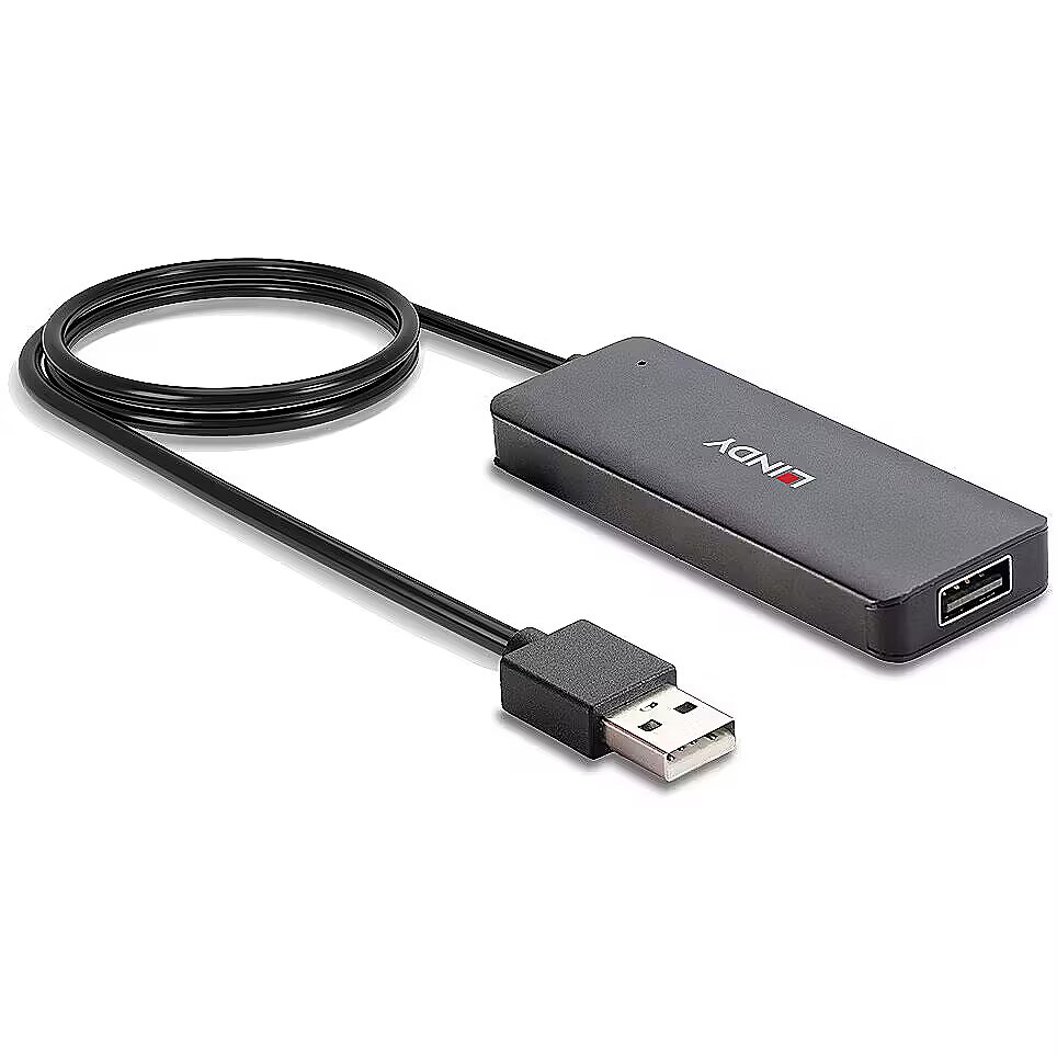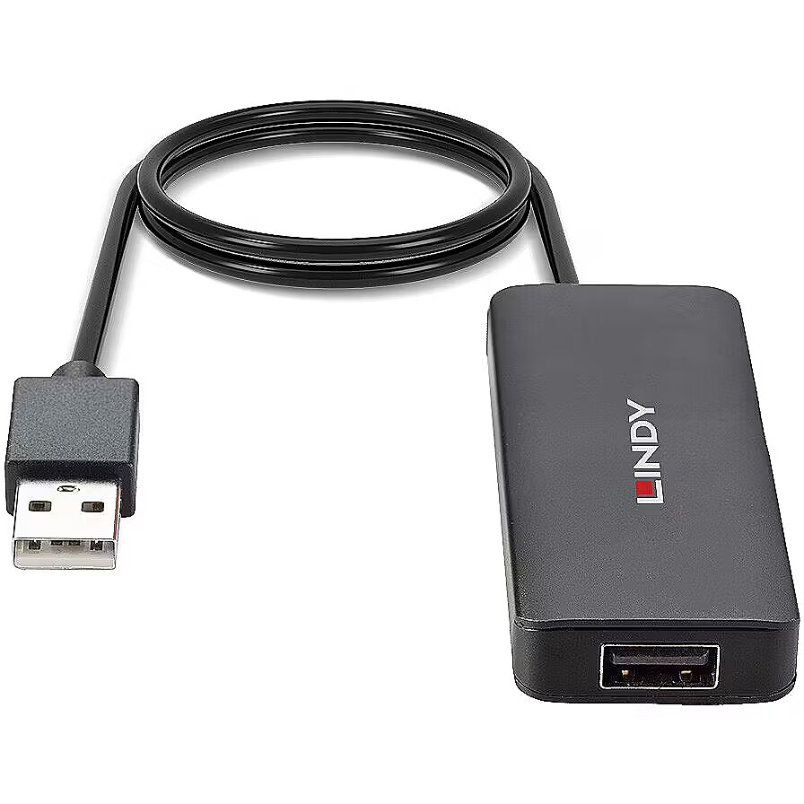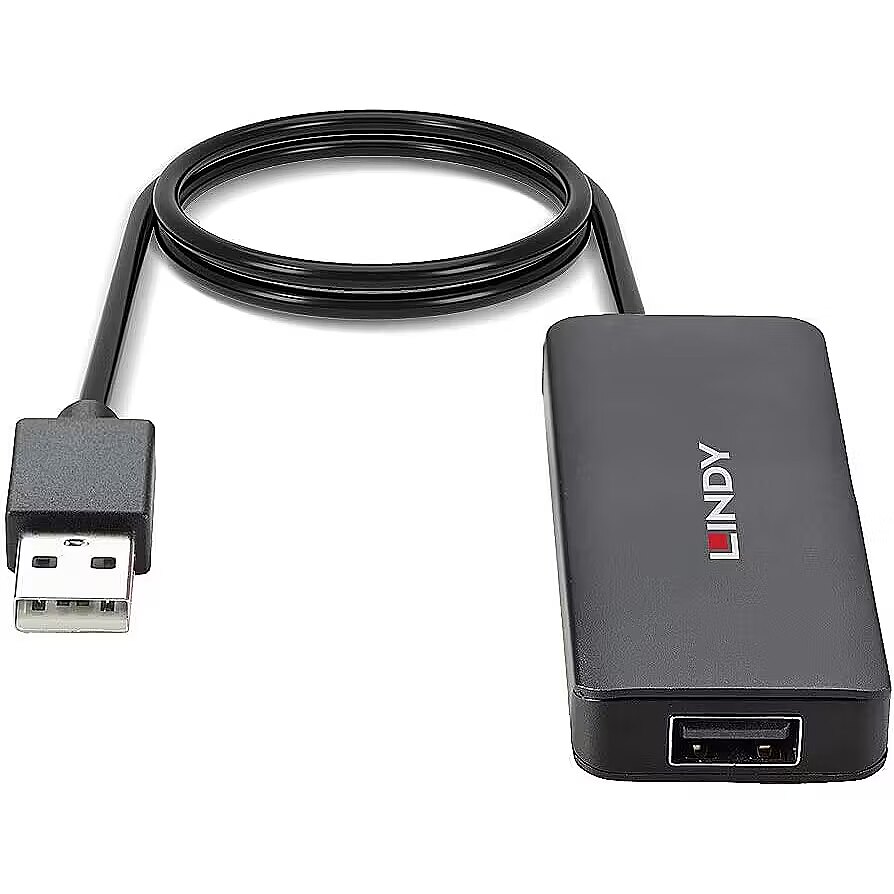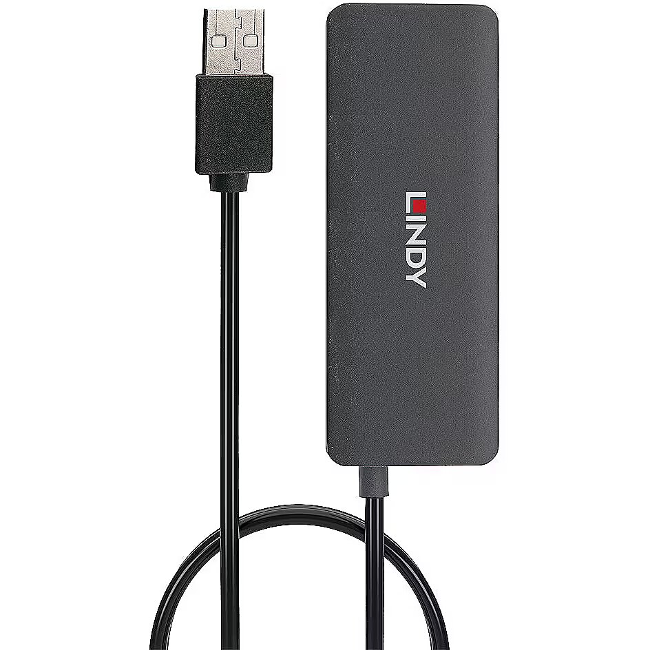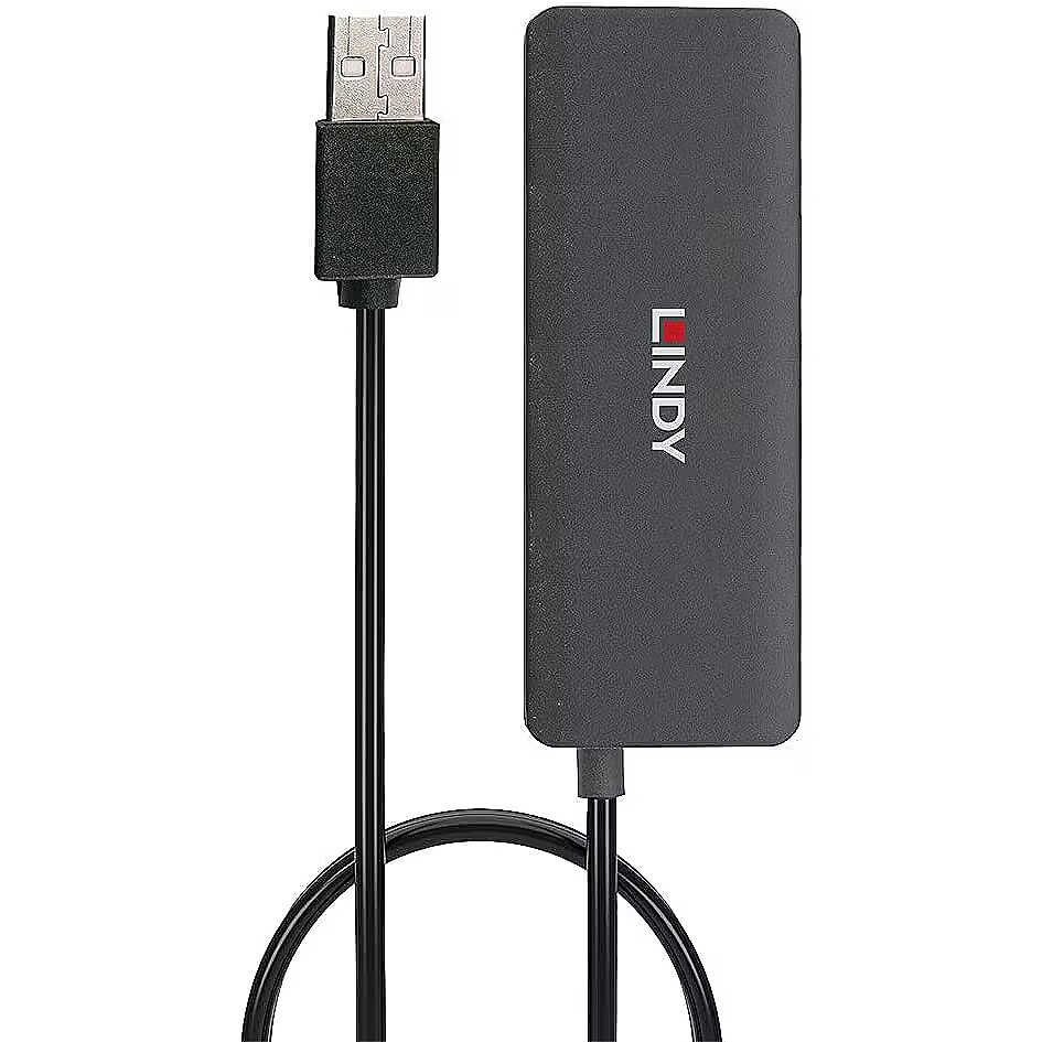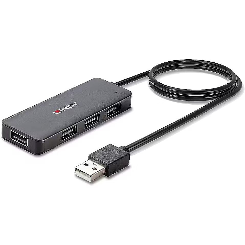 ShortSummaryDescription - Lindy 4 Port USB 2.0 Hub, USB 2.0, USB 2.0, 480 Mbit/s, Black, Plastic, Round cable