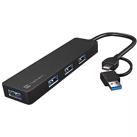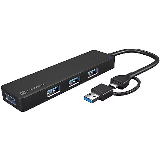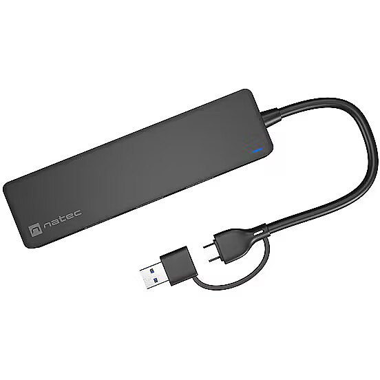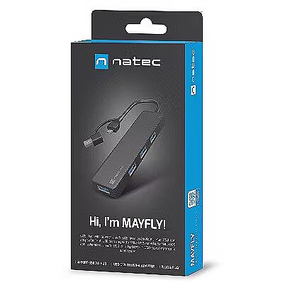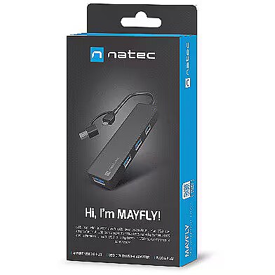 Are you looking for a compact and functional USB HUB that will allow you to use more accessories? Meet Natec Mayfly a USB HUB with up to 4 USB-A 3.0 ports and an adapter that will connect it to both USB-C and the classic Type A connector. Small size, high data transfer speed and readiness to operate without unnecessary drivers this is Natec Mayfly.
