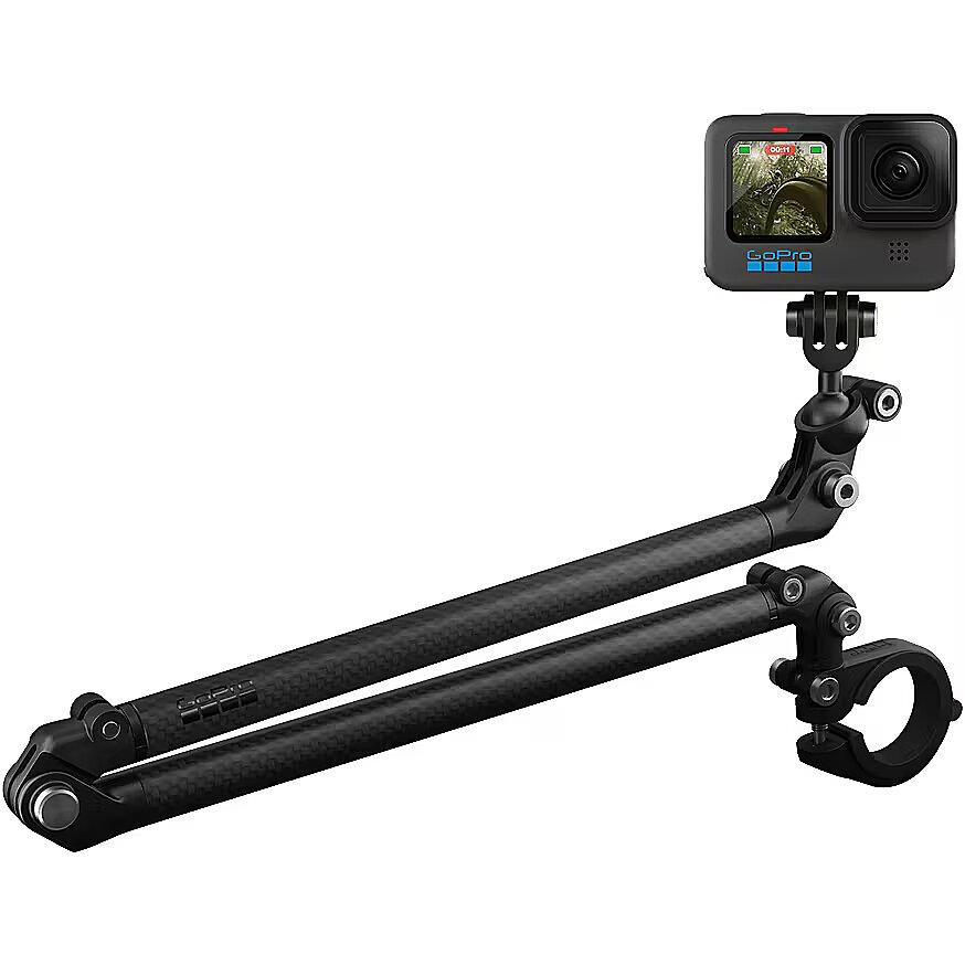 description_en - The Boom + Bar Mount features carbon fiber extension arms that can be easily attached to most round handlebars and seatposts to get full-spectrum shots of you facing the camera, follow-cam footage or side shots of you on your bike. It also features integrated swivel points and a ball-joint camera mount that let you get the exact capture angle you want. Includes 2 carbon fiber arms, Ball-Joint Camera Mount, Pro Handlebar/Seatpost/Pole Mount, 5 Bar/Post Adapters, Curved + Flat Adhesive Mounts, mounting buckle, triangulation support slider, 4mm hex key, 2 extra hex screws, hex key storage clip and drawstring bag Premium carbon fiber arms deliver exceptional strength and durability in a lightweight design Convenient folding design makes it easy to take anywhere, pack away or adjust the extension length on the go Built-in metal mounting fingers swivel 360° to let you capture the action from any angle Attachable ball-joint camera mount provides full camera rotation and tilt for maximum flexibility Included hex key lets you easily adjust the hex screws and securely lock the arms into place Included triangulation support slider lets you use one arm to support the other to create ultra stable capture platforms Can be combined with additional Boom extensions (sold separately) to create your own customized gear setups Arm extension range is 10-21 inches Boom is not intended for and should not be used for skydiving, base jumping, bungee jumping or other aerial activities and sports