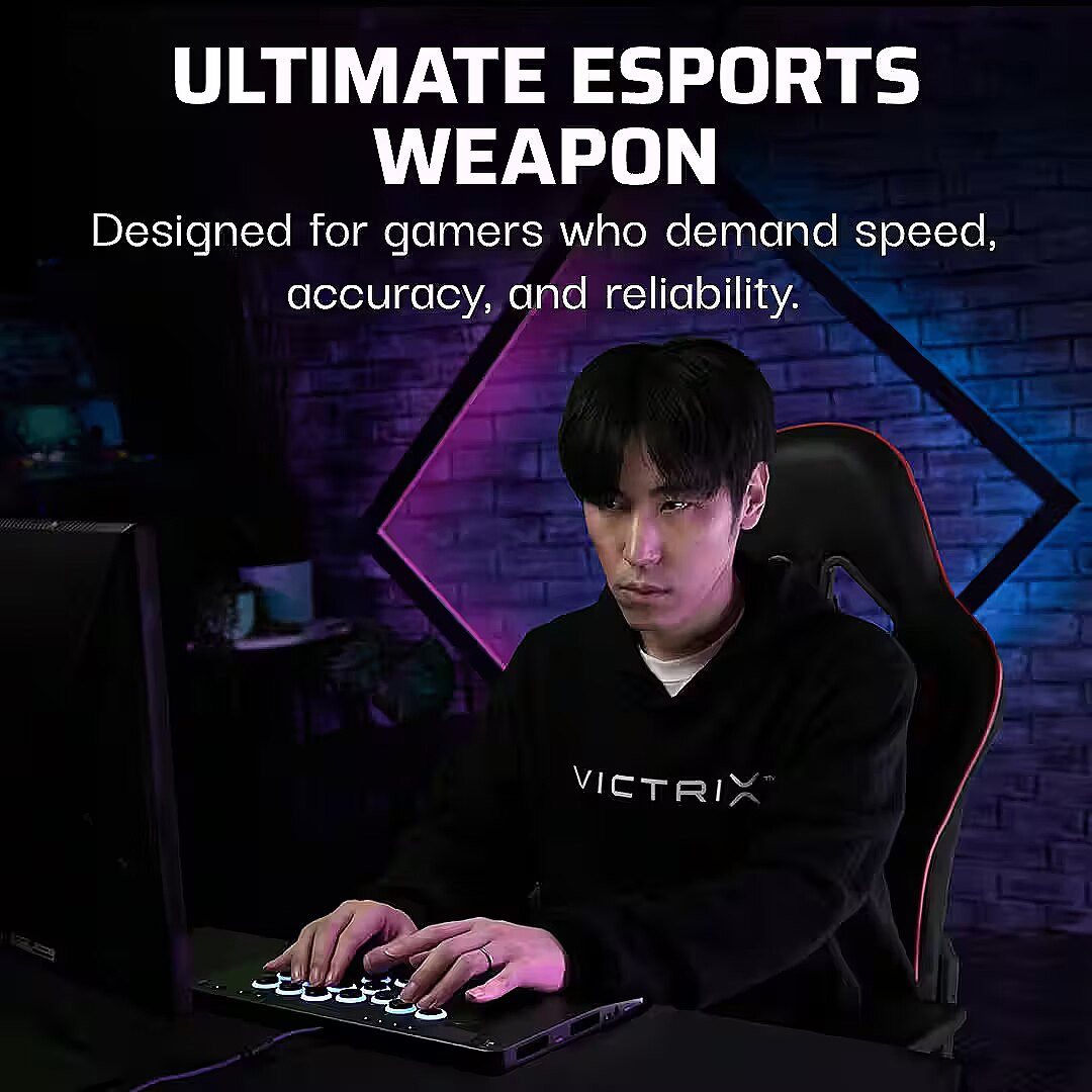 Victrix Pro KO ainulaadse 16-nupulise paigutuse on optimeerinud legendaarne võitlusmängude meister Momochi, tagades parima võimaliku mängukogemuse. Mugav reisikaaslane