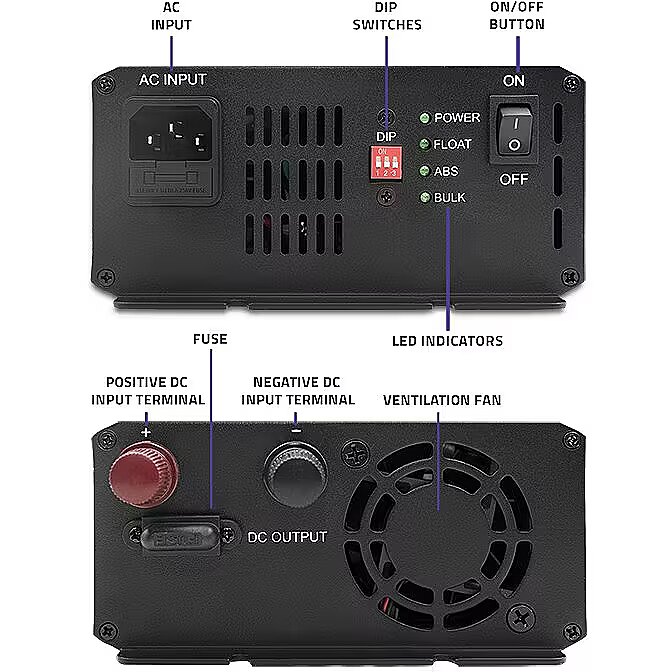 - 3-stage charging mode - provides much faster, efficient and full charging without the problem of voltage drops,