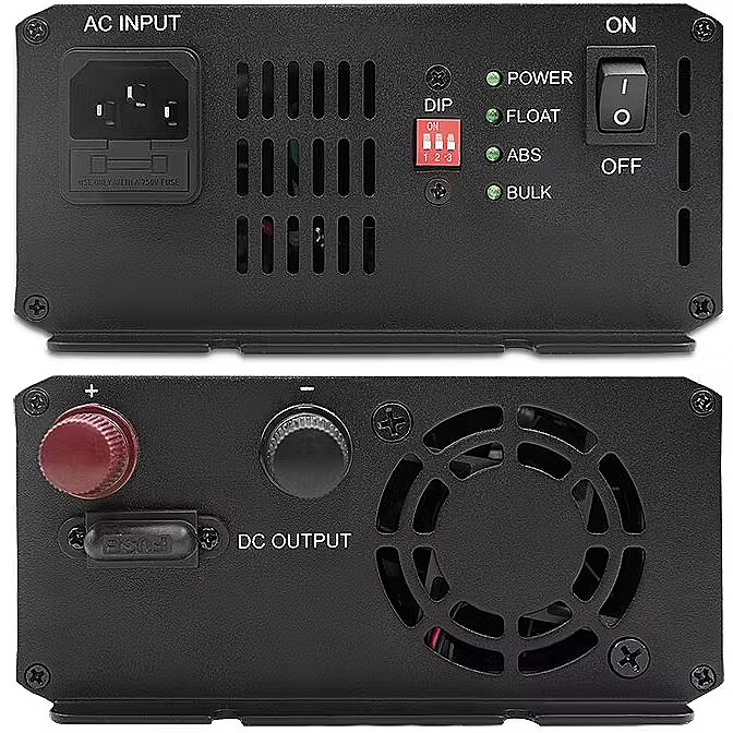 - Equipped with DIP-switch - this is the charger's component for changing the battery charging settings - it allows 7 different SW combinations to be set, we can adjust the charging mode according to the battery type you have, e.g. charging SLA / gel / AGM / flooded / calcium and LiFePO4 lead-acid batteries, as well as the constant voltage power supply mode,