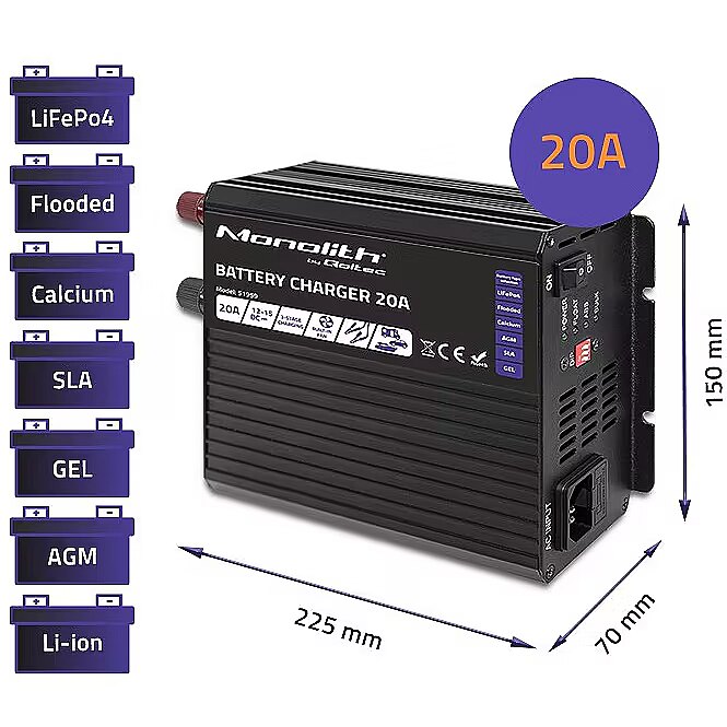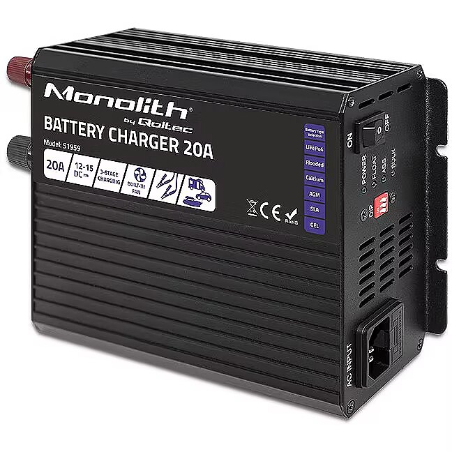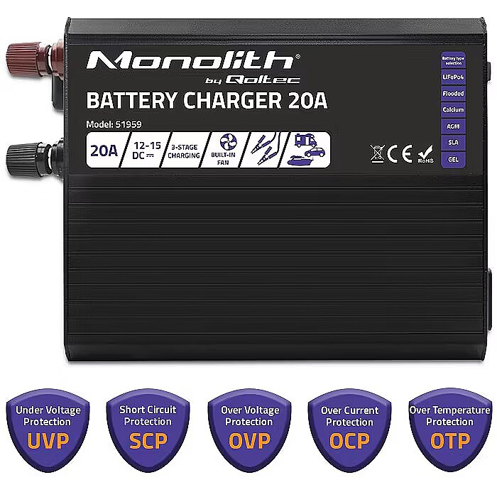 Name - Qoltec Inteligentna ładowarka Monolith do akumulatorów LiFePO4 AGM GEL SLA | 20A | 12V