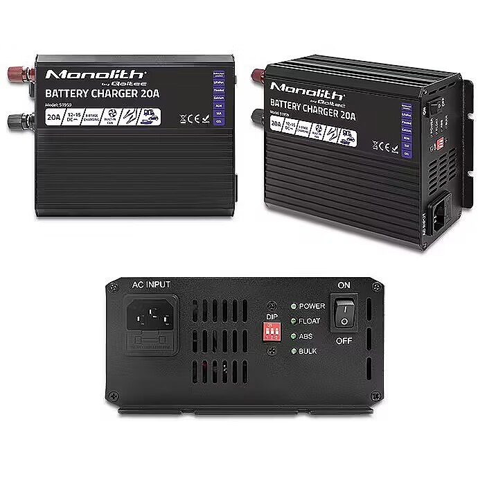 Qoltec 51959 Smart Monolith charger for LiFePO4 AGM GEL SLA batteries / 20A / 12V
