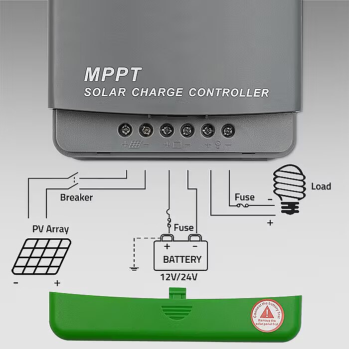 Solar panel reverse connection protection: The regulator is equipped with a polarity detection circuit that checks that the solar panel wires are connected correctly.