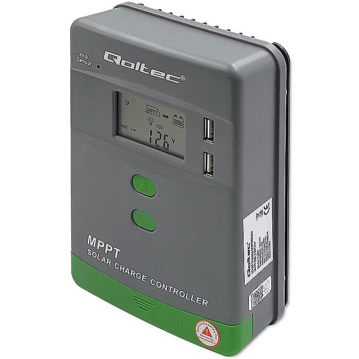 Name - Qoltec Solarny regulator ładowania MPPT z czujnikiem temperatury 20A |12V / 24V | LCD | 2 x USB