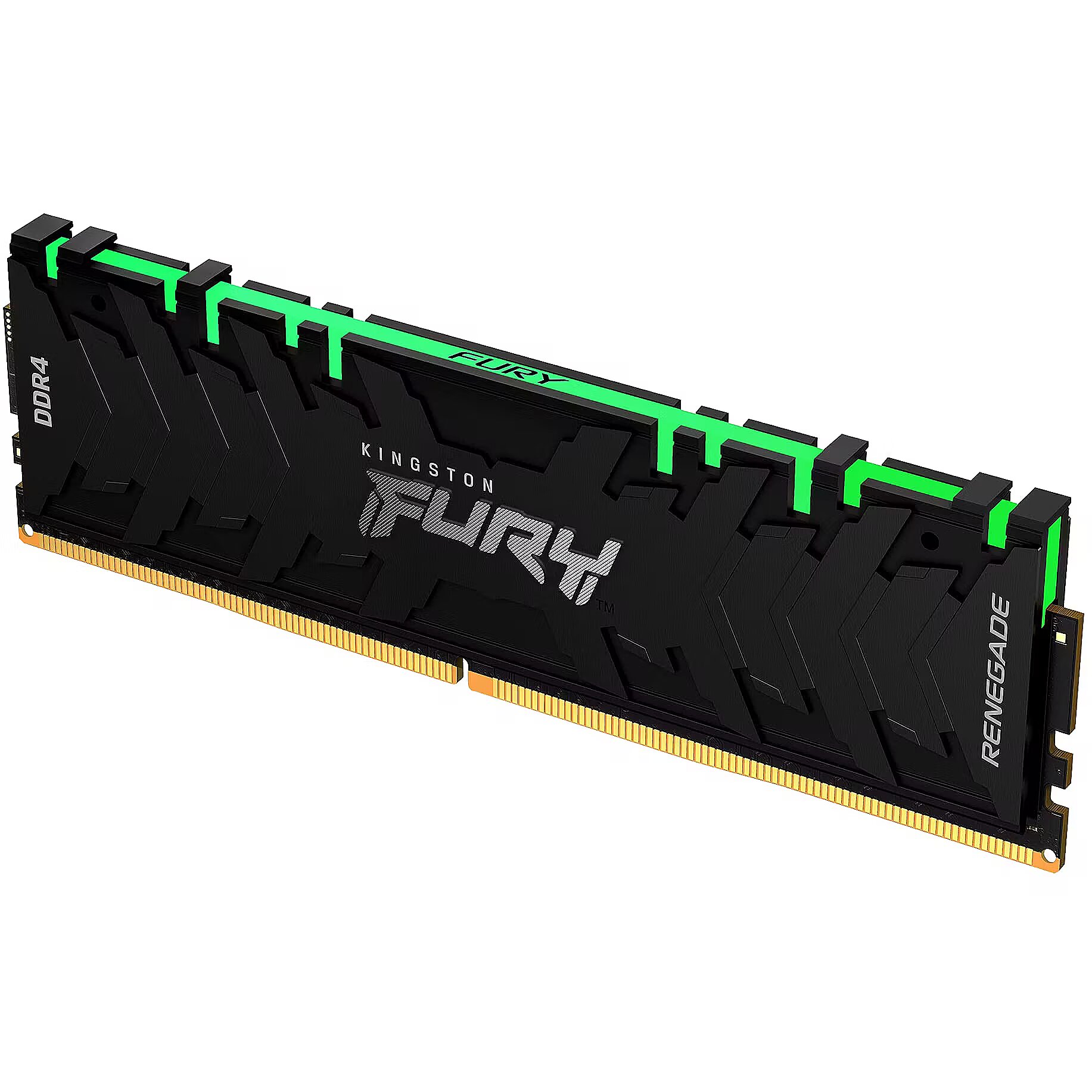 LongDesc - Kingston FURY™ Renegade DDR4 RGB* is the ideal upgrade for the power user who wants cutting-edge performance, with stylish RGB in their AMD- or Intel-based system. 10 LEDs create dynamic RGB lighting with Kingston FURY's patented Infrared Sync Technology™ for smooth, coordinated effects. Put in hours for work or play, crank up your frame rate, improve your workflow and edit gameplay in a flash thanks to speeds of up to 4600MT/s[*]* paired with quick latencies. The intense, stylish two-tone black heat spreader with black PCB is for fun and function to keep your system cool. Available in single module capacities of 8GB–32GB and kits of 2, 4 and 8 with capacities of 16GB–256GB. [Kingston FURY Renegade DDR4 RGB is Ready for AMD Ryzen, and Intel® XMP Certified] or XMP Ready.Stunning RGB styleBring your workstation to life with smooth, stunning RGB lighting effects*Patented Kingston FURY™ Infrared Sync Technology™RGB lighting stays synced thanks to Kingston FURY's Infrared Sync TechnologyPowerful aluminium heat spreader displays smooth RGB effectsThe two-tone black aluminium heat spreader and black PCB highlight the stunning RGB effects to keep your rig running and looking sharp.Intel XMP Certified or Read profilesIntel Extreme Memory Profile technology makes it possible to overclock with ease. Simply select one of the built-in, hand-tuned profiles in your BIOS to get the benefits of overclocking.Ready for AMD Ryzen™Get memory that’s Ready for Ryzen and will seamlessly integrate with your AMD-based system.