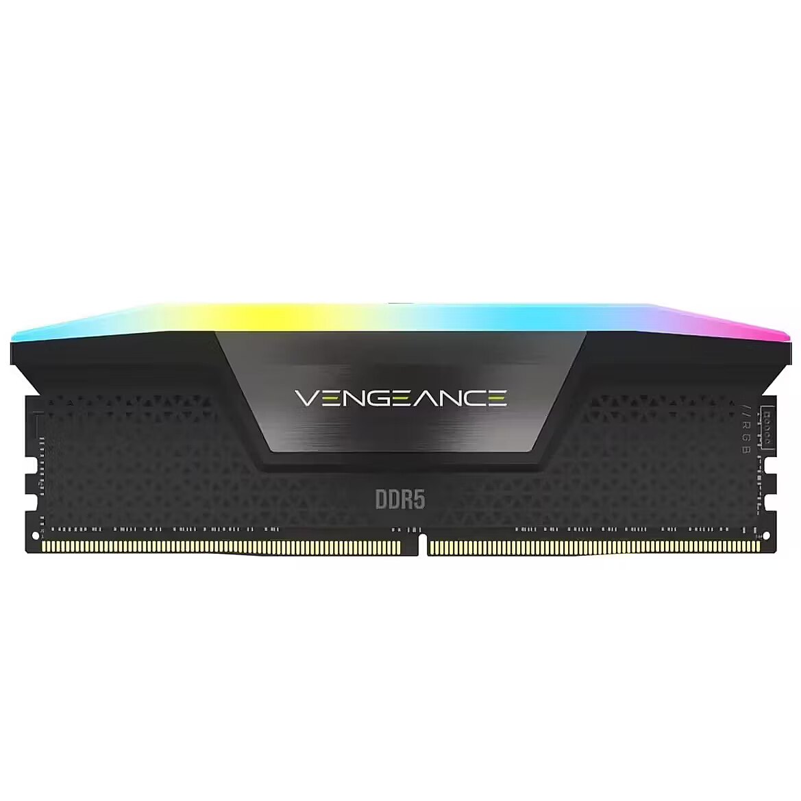 Description - DDR5 Vengeance RGB CORSAIR VENGEANCE RGB DDR5 memory delivers DDR5 performance, higher frequencies, and greater capacities optimized for Intel motherboards while lighting up your PC with dynamic, individually addressable ten-zone RGB lighting. Tightly screened high-frequency memory chips enable faster processing, rendering, and buffering than ever, with onboard voltage regulation for easy, finely controlled overclocking. Take control with CORSAIR iCUE software and enable RGB lighting customization, real-time frequency monitoring, onboard voltage regulation, and Intel XMP 3.0 profile customization. A custom PCB provides superb signal quality for high performance and stability on the latest Intel DDR5 motherboards. For cutting-edge DDR5 performance with mesmerizing RGB lighting, VENGEANCE RGB DDR5 lights the way.