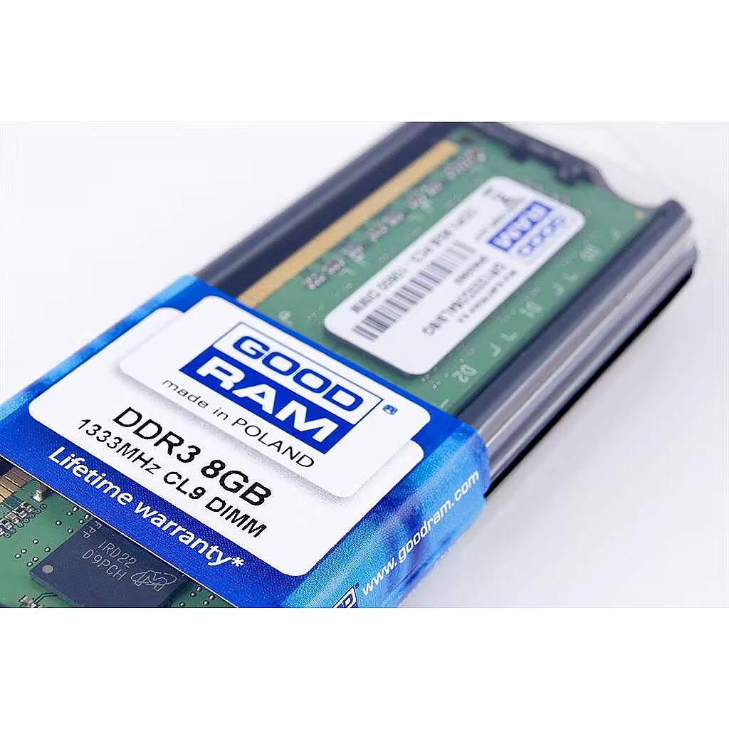 LongDesc - DDR3 DRAM modules are commonly used in PCs, where very high data transfer rates, high capacity and low power consumption are required (even 1.35 V in the case of low voltage modules).Ready to workGOODRAM DDR3 memory has 2 GB, 4 GB or 8 GB of memory in one module and is available in Single and Dual Channel configurations (8, 16 GB). 1600 MHz clock frequency makes GOODRAM great choice, no matter what kind of task is need to be done.Highest quality = lifetime warrantyAll GOODRAM memory modules are manufactured in Poland (Europe) with highly selected components and undergo a multi-stage quality tests before setting off for a trip to retail stores. The Quality Control Department ensures that each module is perfectly prepared for many years of use, hence we guarantee our users a lifetime warranty.Energy efficiencyThanks to the “fly-by” topology and address bus termination on the memory module it is possible to clock DDR3 up to 1600 MHz. Low power consumption makes DDR3 modules, a great choice for mobile applications. Each memory module that comes out from our factory undergoes multi-stage control tests to ensure the specified performance and durability of the product. All GOODRAM memory modules are backed by a lifetime warranty and free remote technical support.