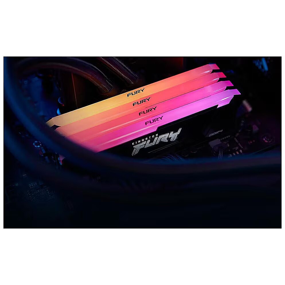 LongDesc - Kingston FURY™ Beast DDR4 RGB MemoryKingston FURY™ Beast DDR4 RGB memory upgrades the style and performance of any system. Featuring stunning RGB lighting* to complement the sleek black heat spreader and impressive speeds of up to 3733MT/s[*]. Choose between Intel® XMP Certified & XMP-Ready profiles, Ready for AMD Ryzen™ or go for Plug N Play** automatic overclocking at 2666MT/s to get the boost you need for work and play.Customisable RGB lighting* with sleek stylingTransform your system using Kingston FURY™ CTRL to choose from over a dozen lighting patterns or customise RGB effects on the sleek heat spreader.Kingston FURY™ Infrared Sync Technology™Keep RGB lighting effects in sync with patented Kingston FURY Infrared Sync Technology.Intel® XMP Certified and XMP-ReadyOur engineers have predefined [Intel Extreme Memory Profiles] to reach speeds of up to 3733MT/s[*] to get the most out of your memory.Ready for AMD Ryzen™Trust your AMD-based system to get down to business in-app or in-game with memory that’s ready for Ryzen.Plug N Play – Automatic overclocking up to 2666MT/s**For a reliable and compatible upgrade, Kingston FURY Beast DDR4 RGB Plug N Play modules will auto-overclock to the highest listed speed allowed by system BIOS.